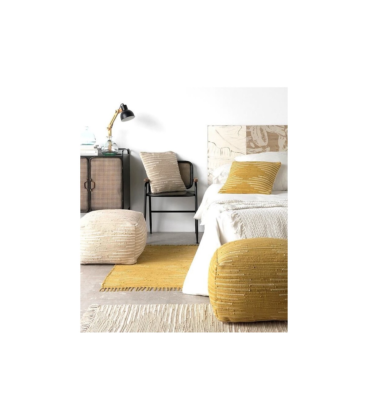 Puf para apoyo de zona de sofás, muy fuerte, realizado en de algodón tejido a mano, un diseño bonito y compensado para apoyar una buena conversación.
