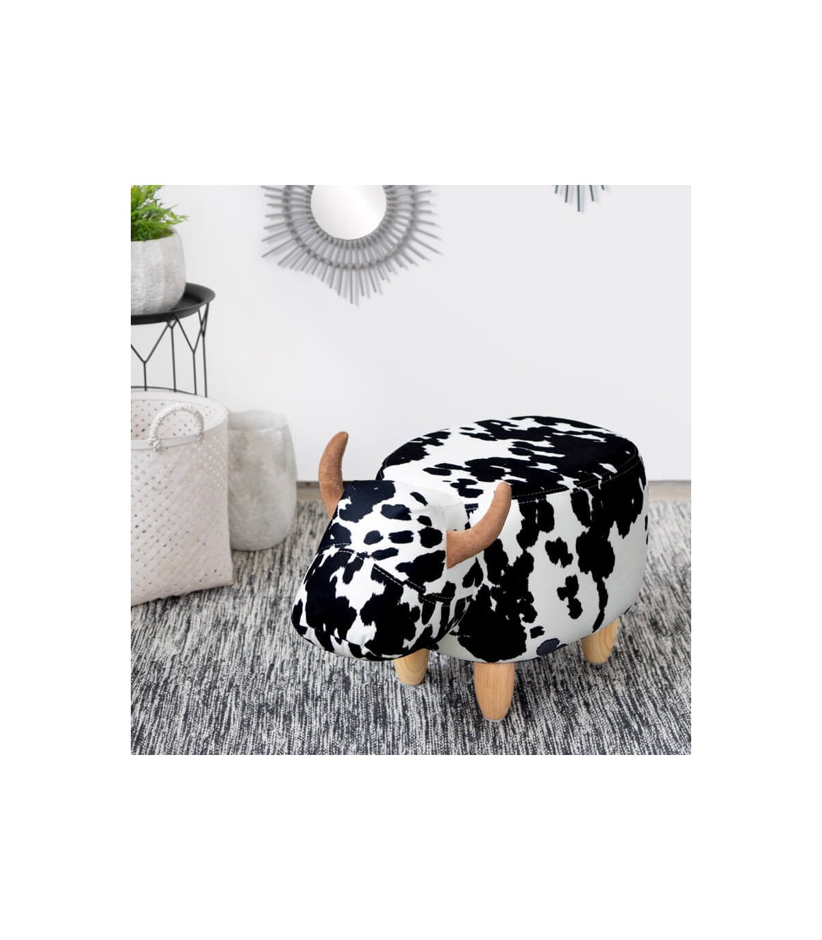 Dale un toque único y divertido a tu hogar con este encantador puf reposapiés estilo moderno vintage, inspirado en una vaca lechera blanca y negra. Fabricado con materiales de alta calidad, cuenta con patas de madera natural equipadas con un sistema anti rayaduras, ideal para suelos delicados. Este puf multifuncional es perfecto tanto como asiento adicional como para reposar tus pies tras un largo día.