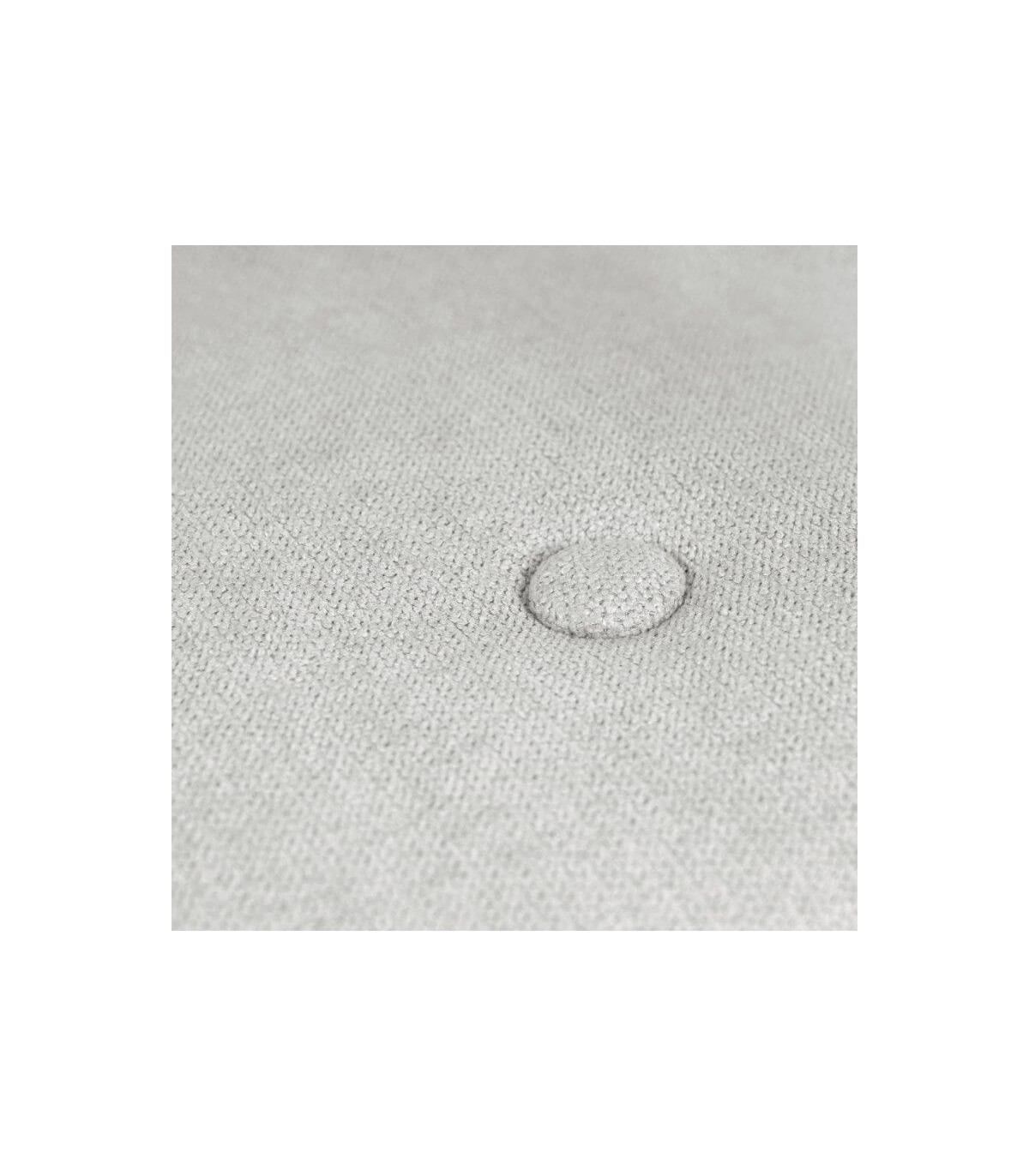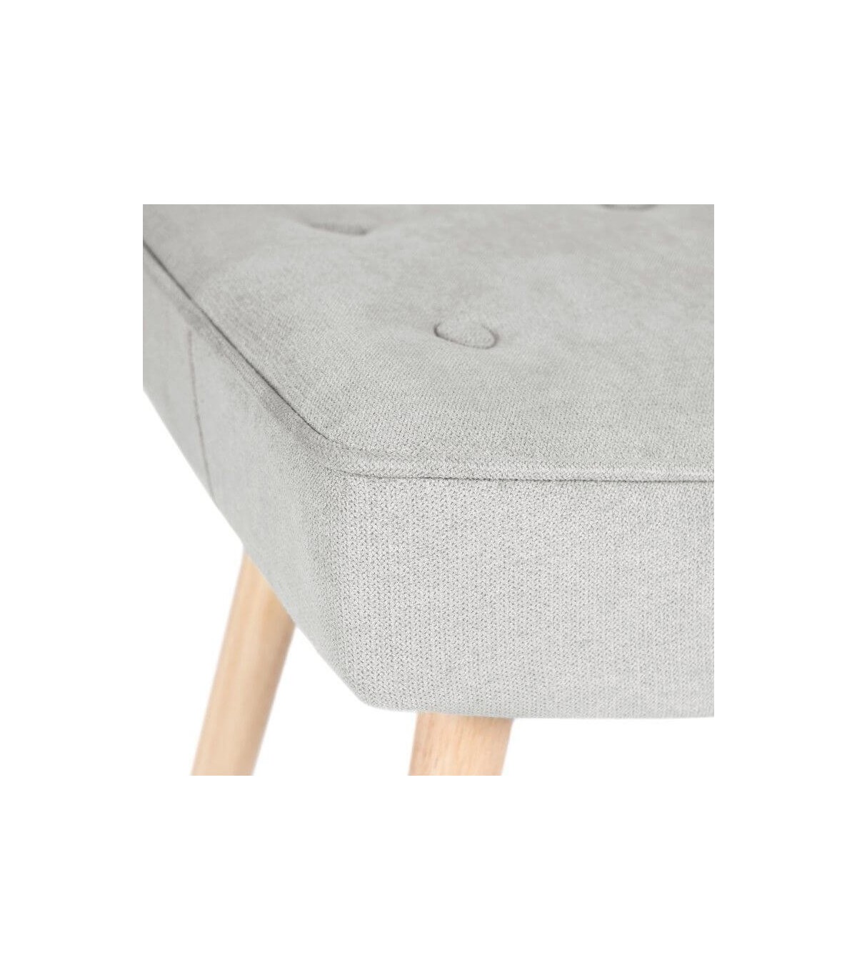 • Acabado, patas de madera natural, tapicería chenilla 50 % poliéster 50 % algodón color gris claro.