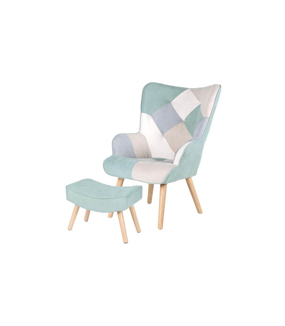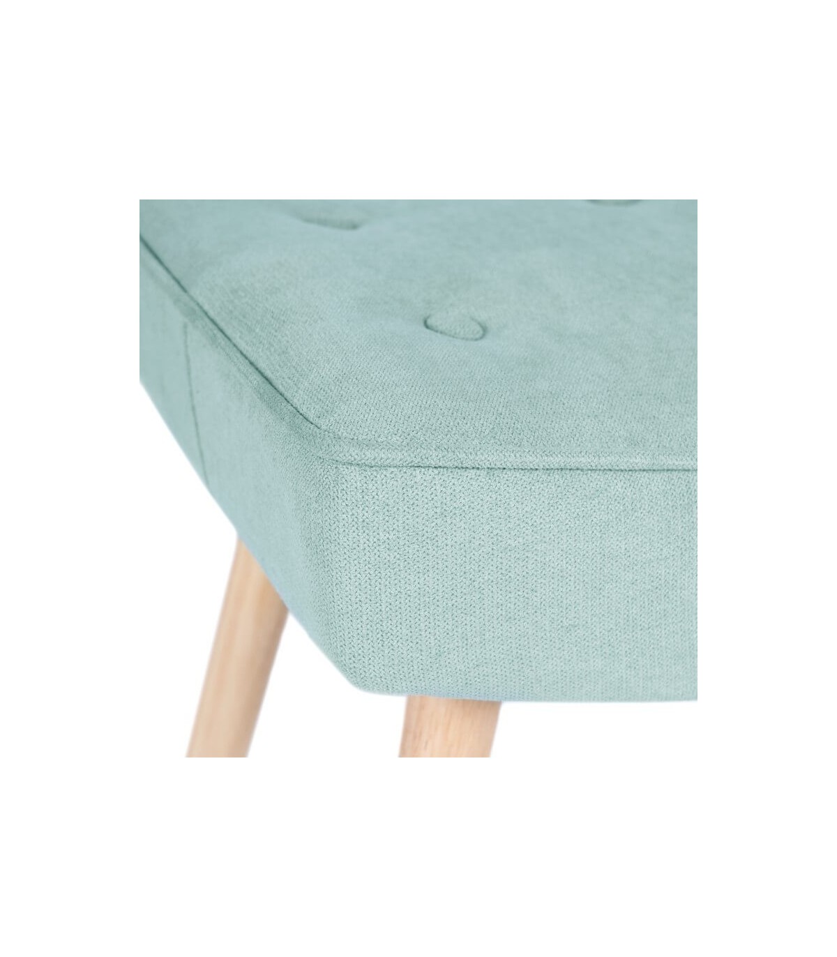 • Acabado, patas de madera natural, tapicería chenilla 50 % poliester 50 % algodón color menta.