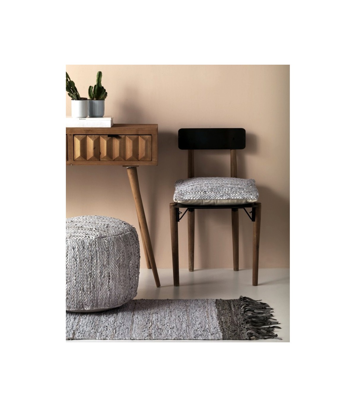 Puf redondo con almacenaje y bandeja, estilo contemporáneo.