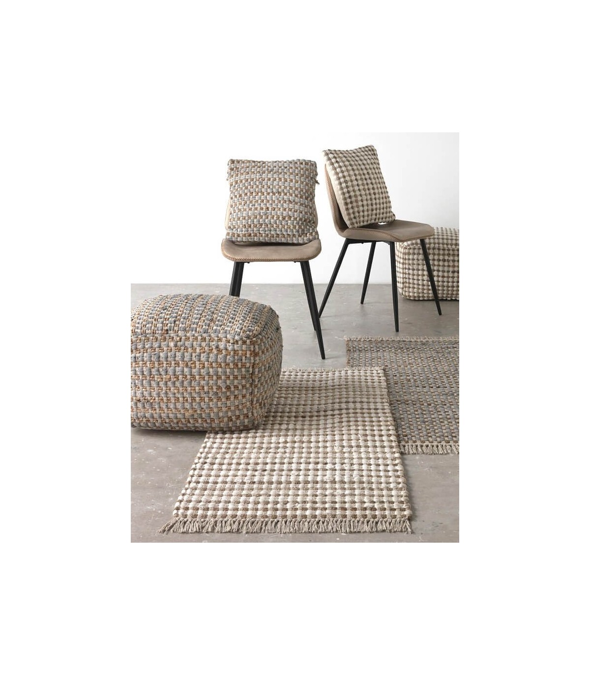 Puf redondo con almacenaje y bandeja, estilo contemporáneo.