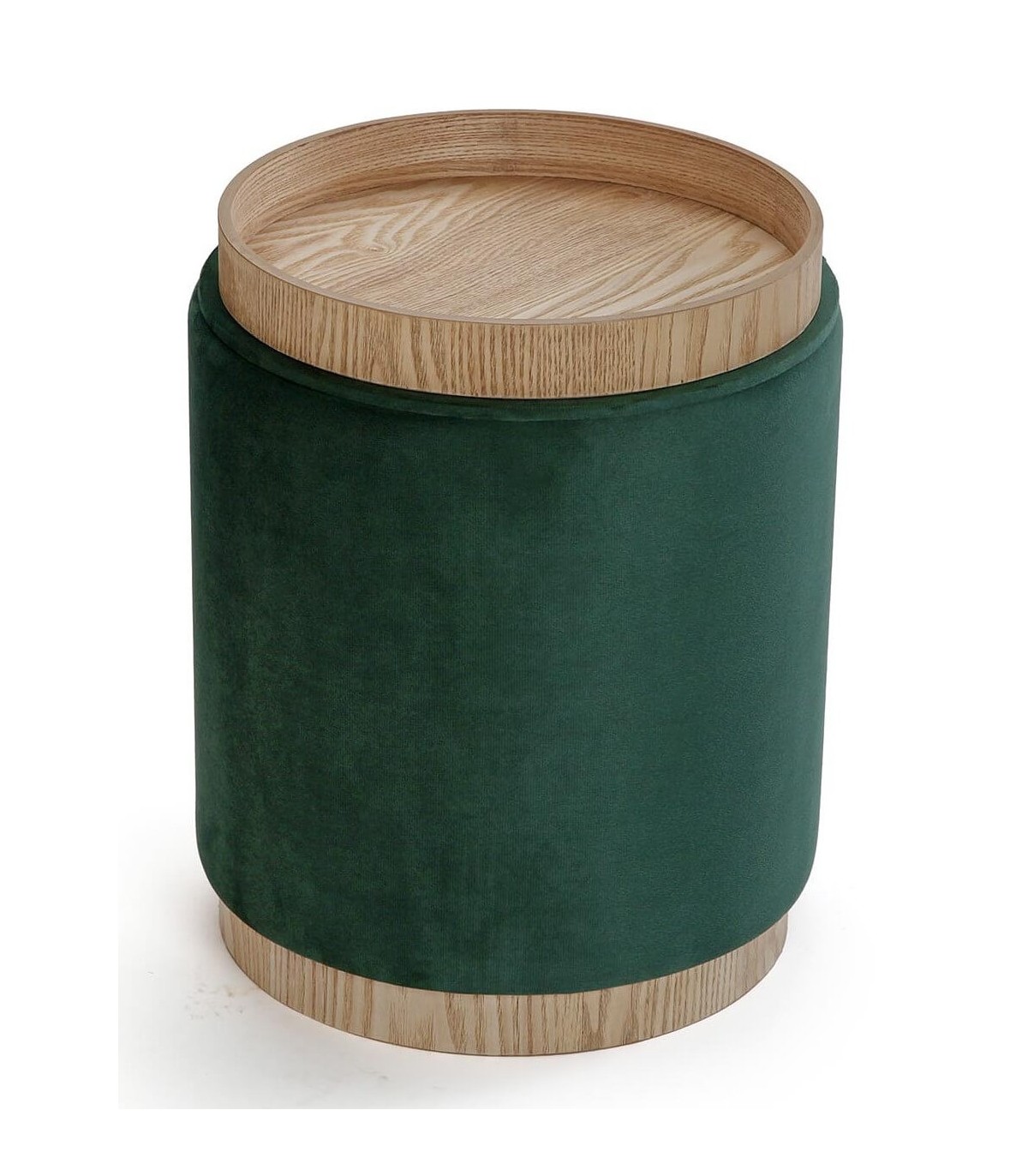 PUF REDONDO ARCON 35 Ø X 42 SALPE VERDE MADERA NATURAL