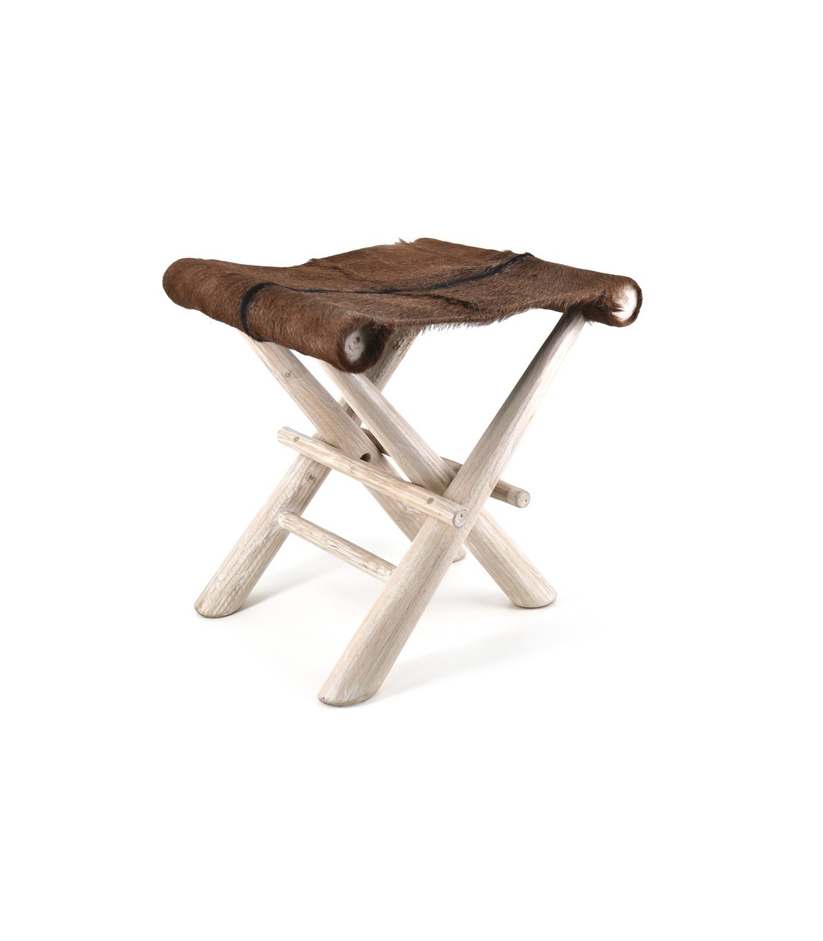 TABURETE PLEGABLE 47 X 40 X 45 VACA MADERA BLANCA VACUNO MARRON