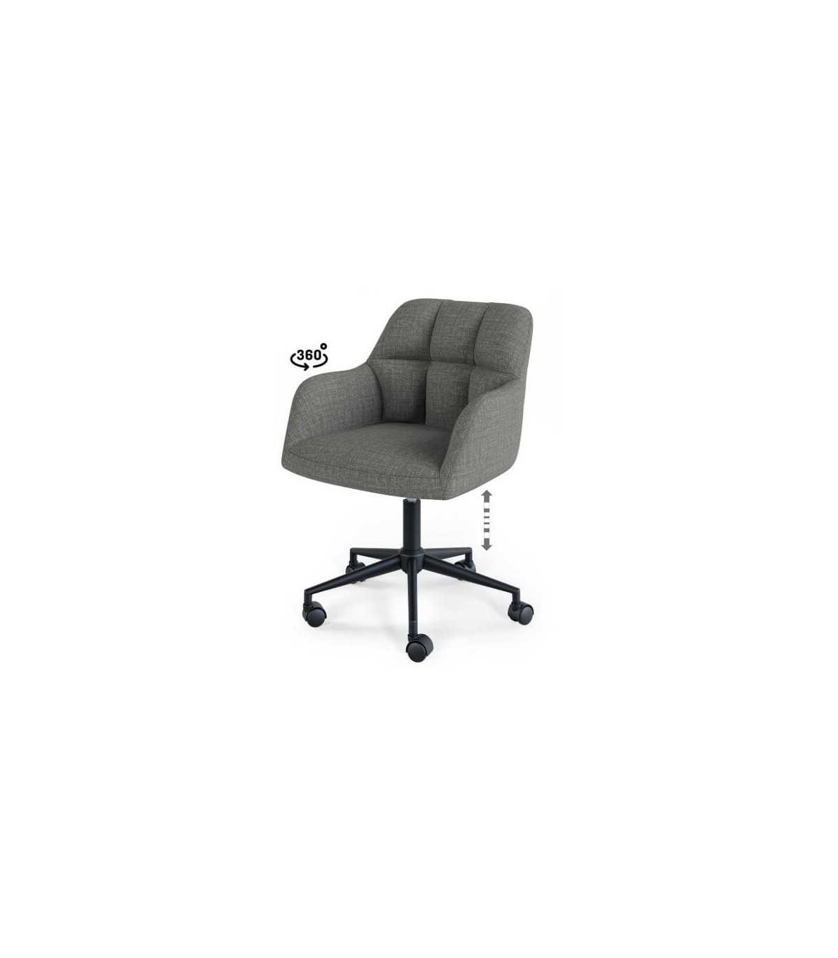 Esta silla de oficina combina comodidad y estilo en un diseño sofisticado y elegante tapizada en gris oscuro, ideal para oficinas modernas, home offices o áreas de estudio.