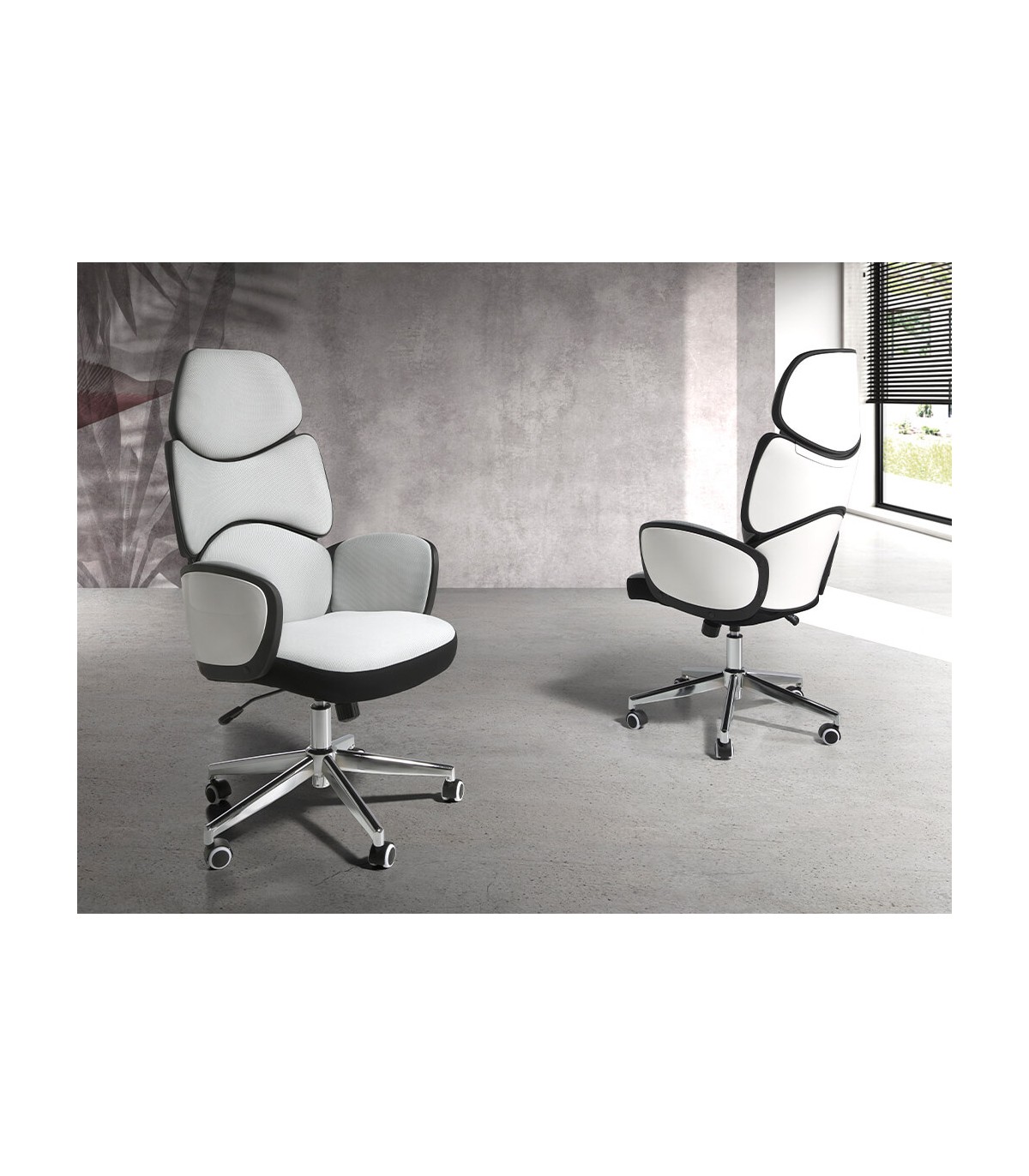 SILLA OFICINA 64 X 69 X 118 CHICAGO PVC BLANCO TEXTIL GRIS