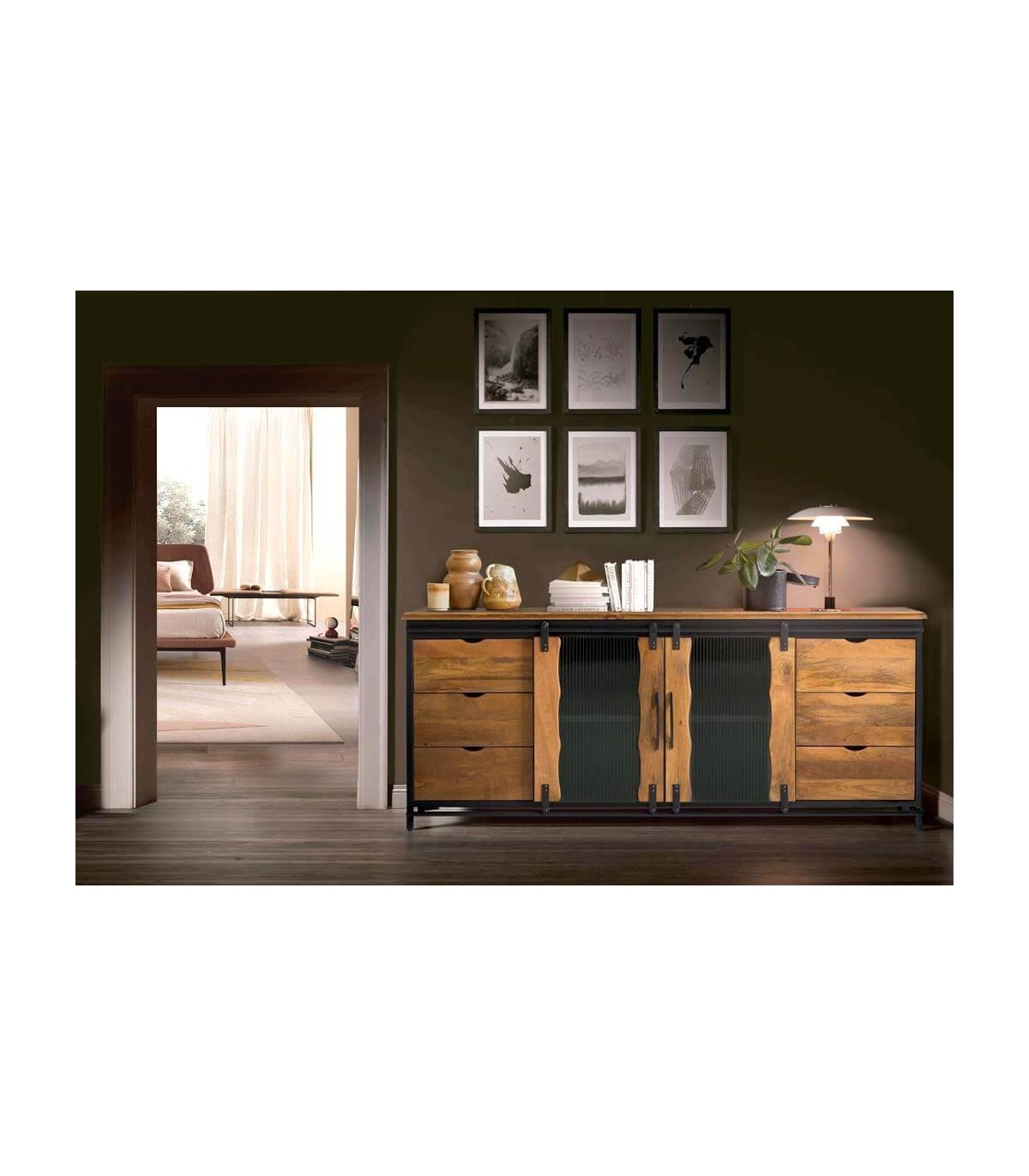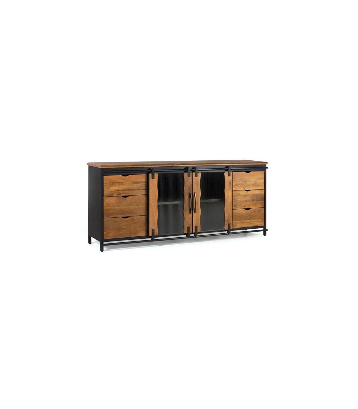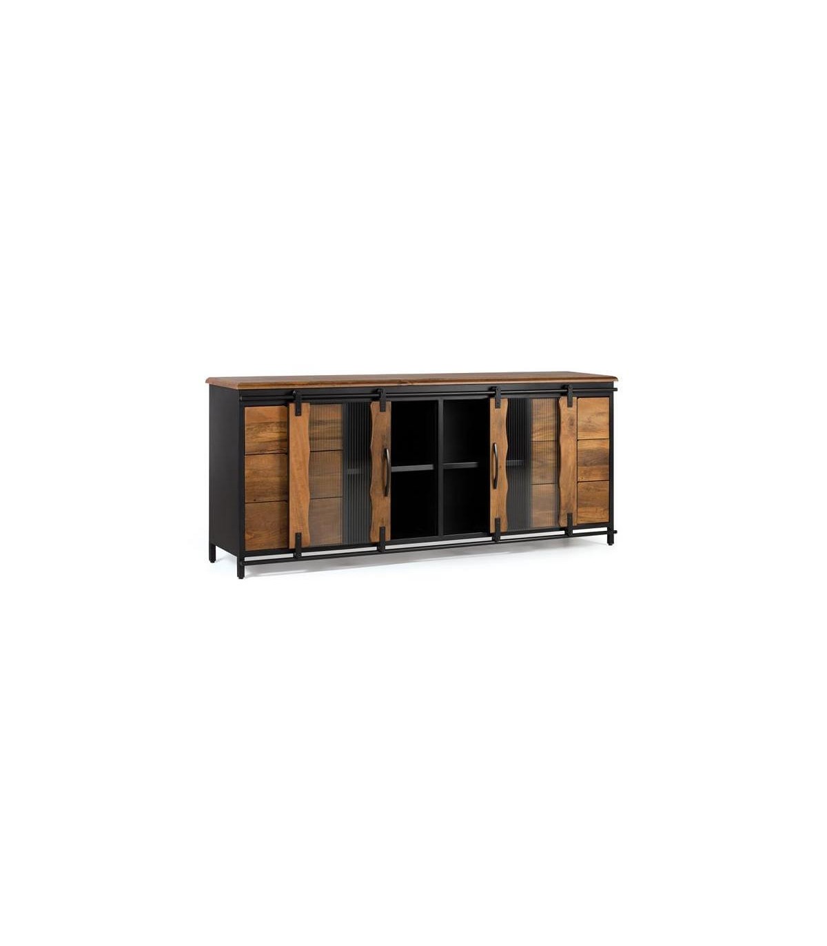 - Aparador, 6 cajones, 2 puertas correderas, estilo industrial.