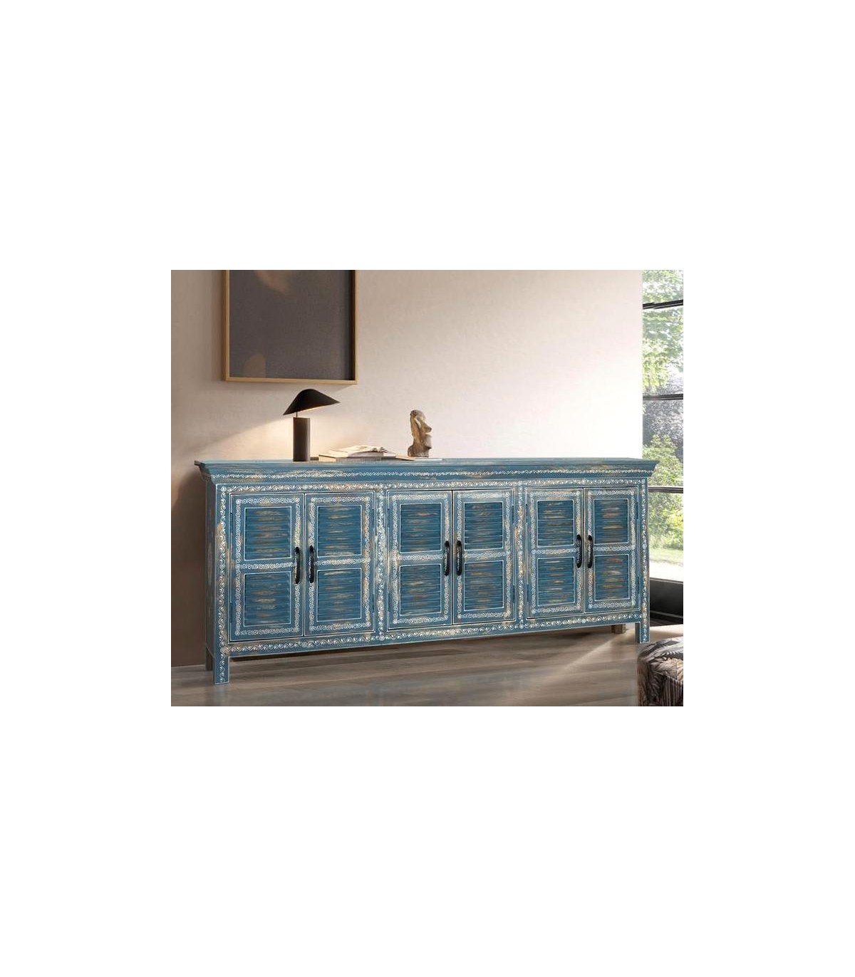 APARADOR 184 X 36 X 76 ARAPEA MADERA AZUL DECORADA A MANO