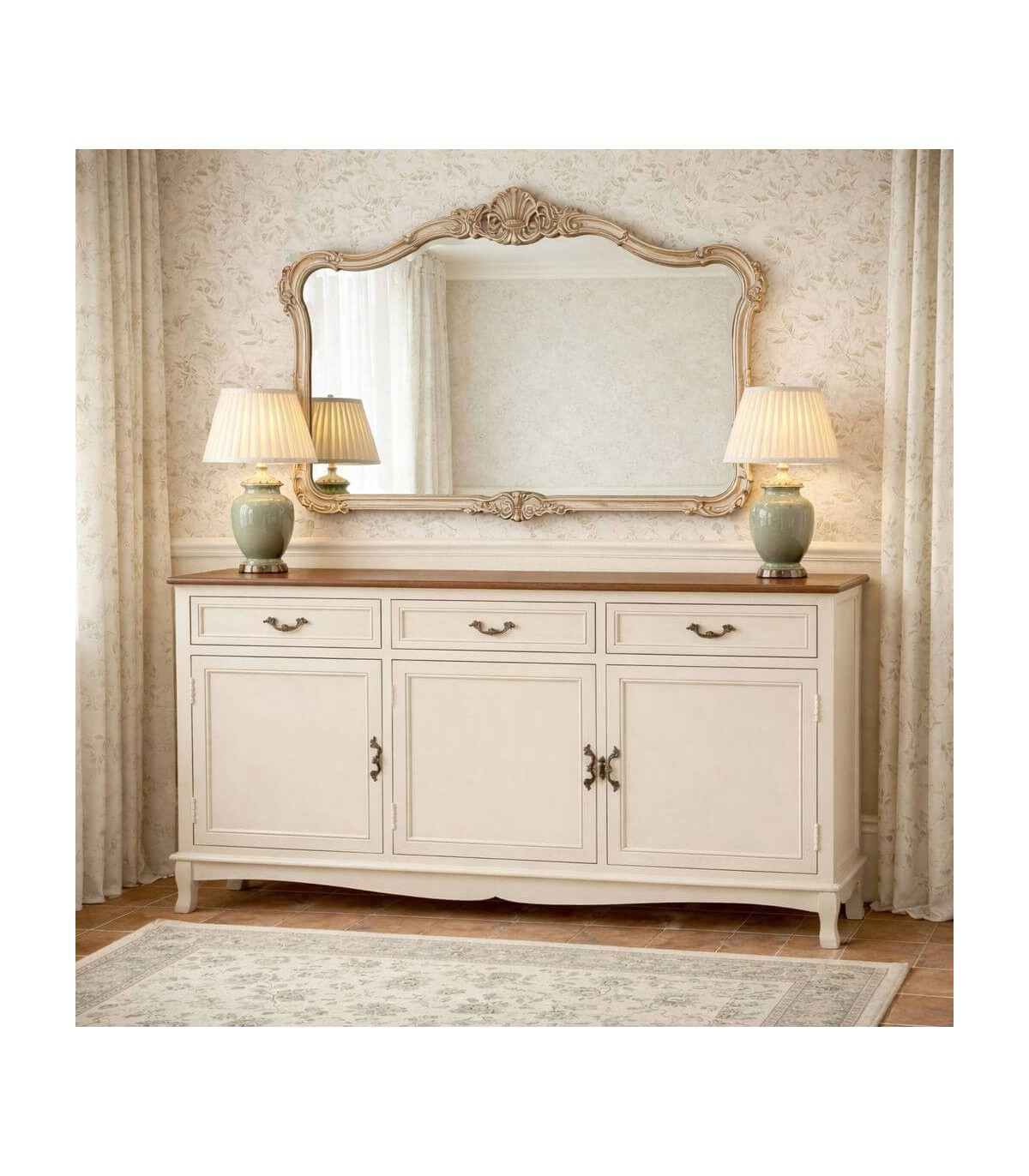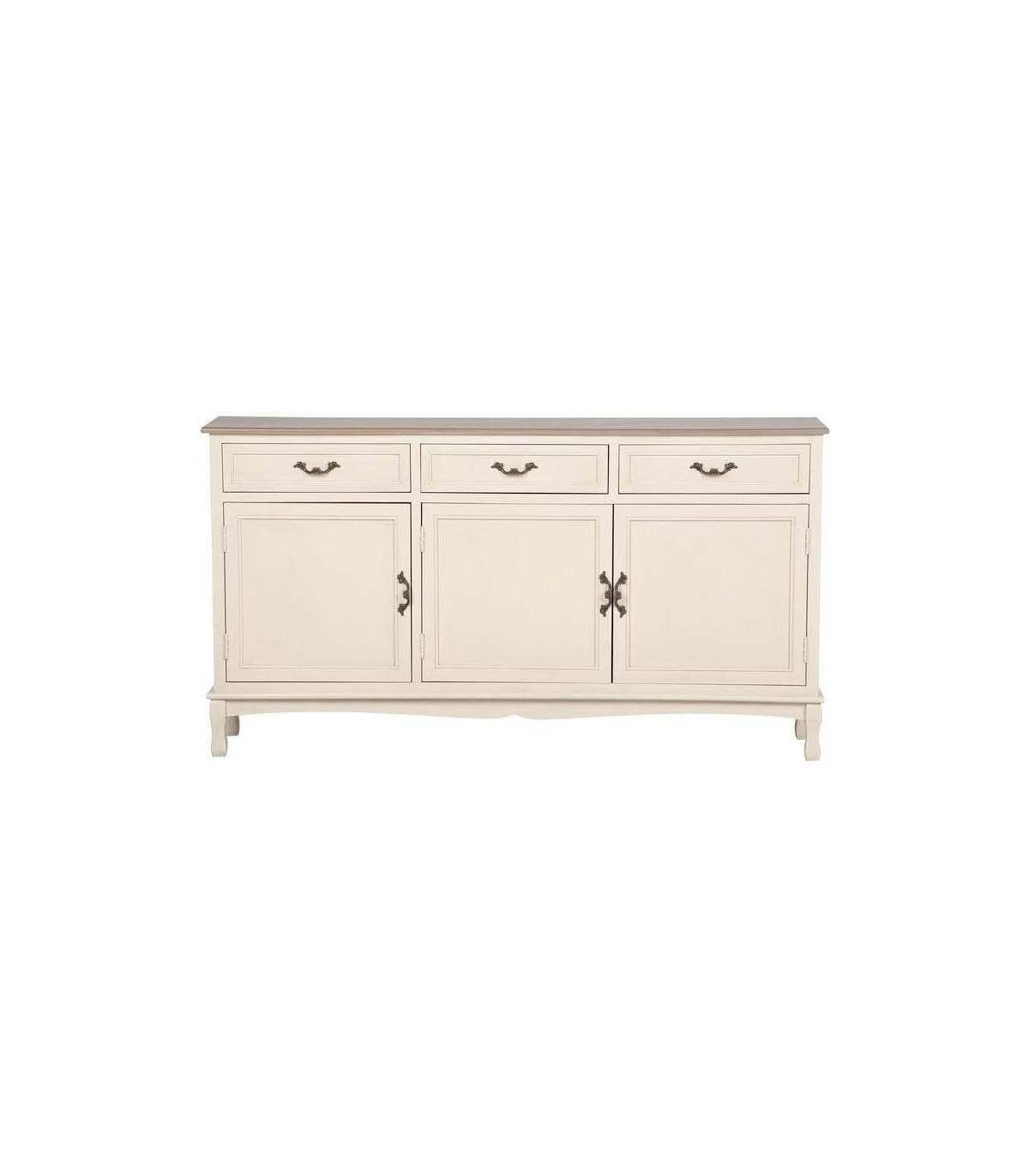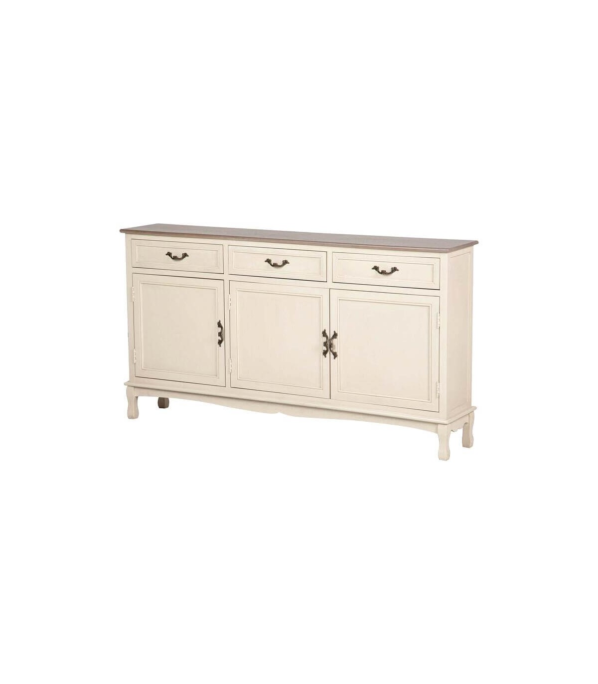 Aparador estrecho 3 puertas, 3 cajones, estilo clásico provenzal.