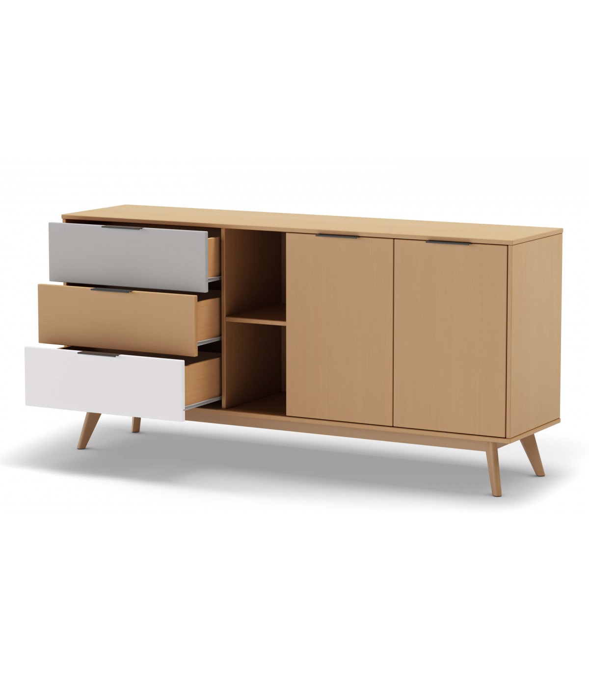 Aparador, 2 puertas, 3 cajones, estilo nórdico.
