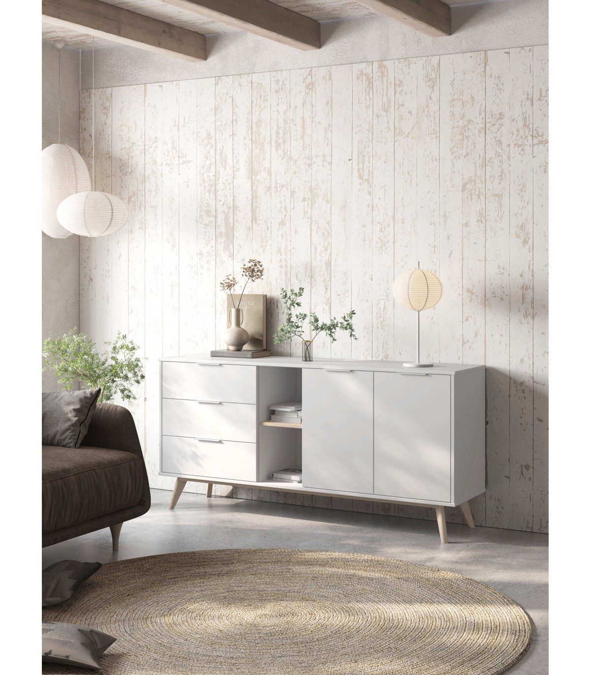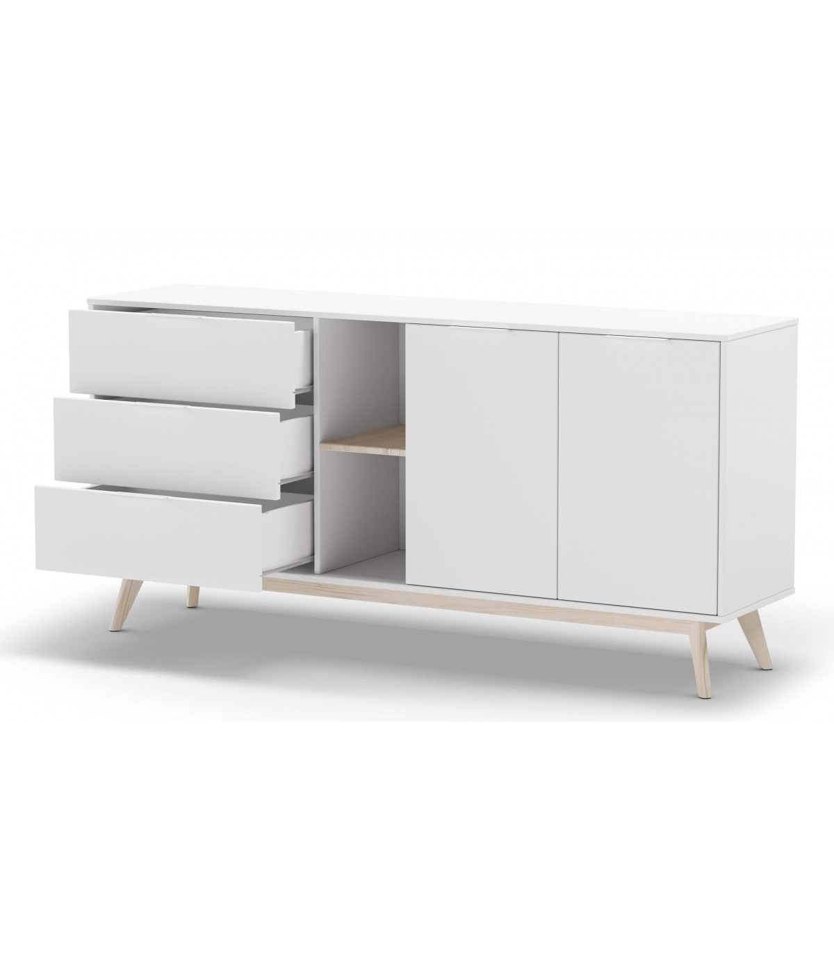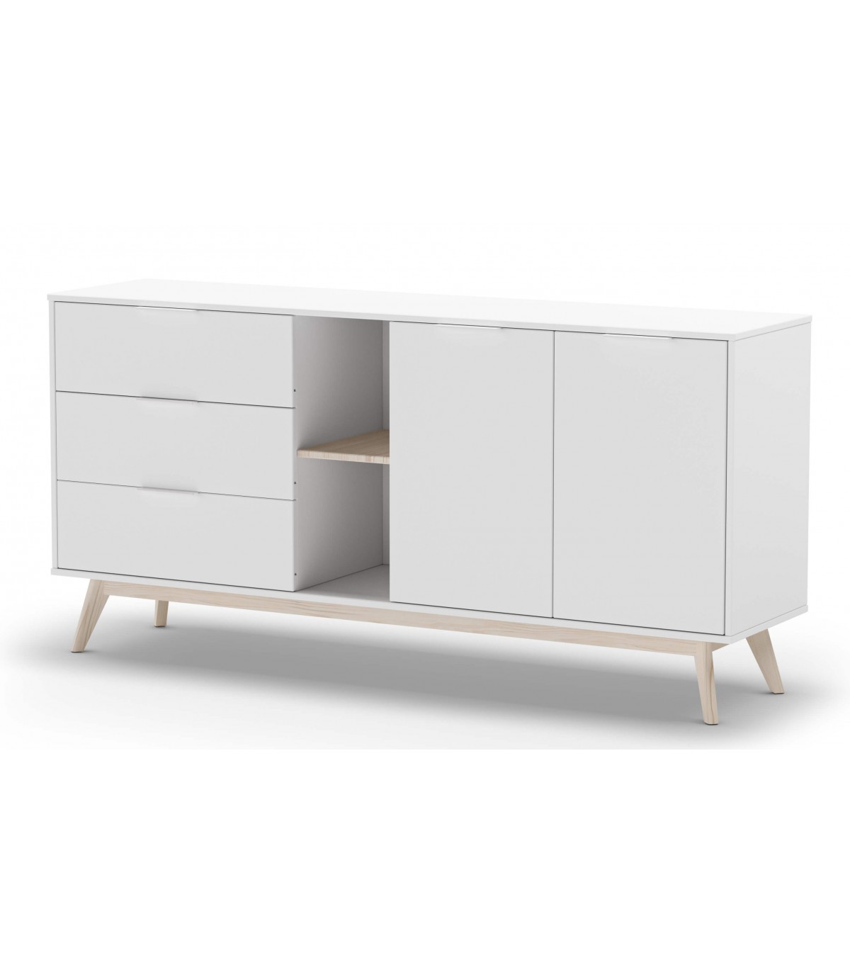 Aparador, 2 puertas, 3 cajones, estilo nórdico.