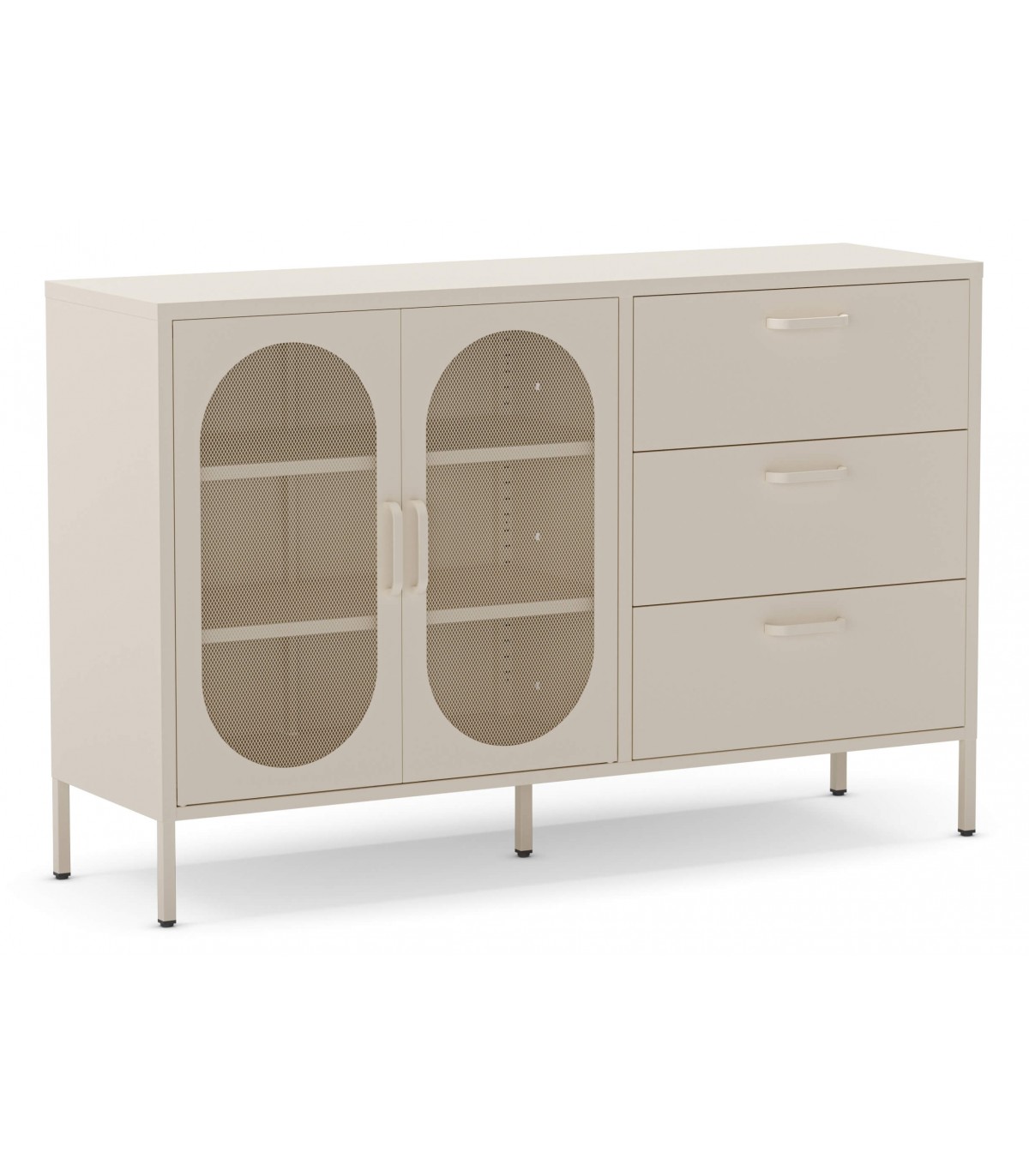 🎨 Acabado: Metal en color crema con puertas perforadas y tiradores a juego.