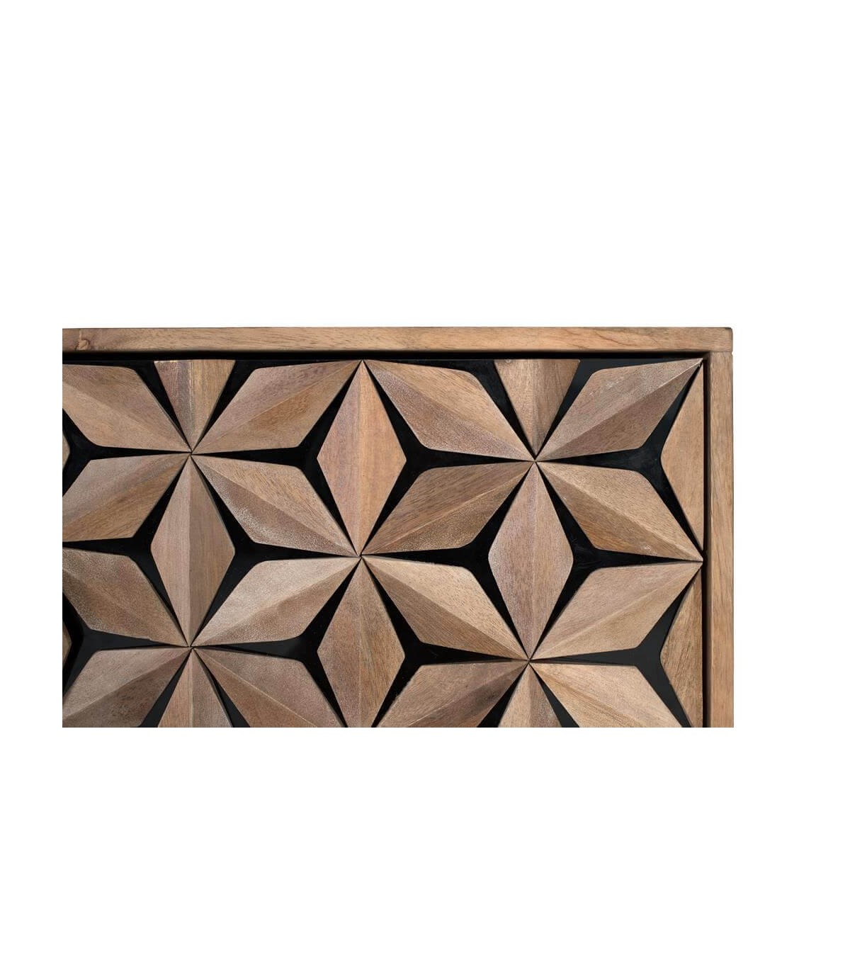Aparador estilo colonial chic con 4 puertas, realizado en madera de mango natural y metal negro, un gran aparador muy original que será sin duda el centro de todas las miradas.