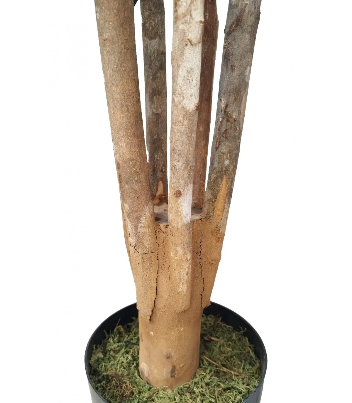 Su frondoso follaje de polietileno de alta calidad y sus troncos naturales garantizan un aspecto realista y sofisticado. Perfecto para salones, recibidores, oficinas y cualquier rincón que necesite frescura.