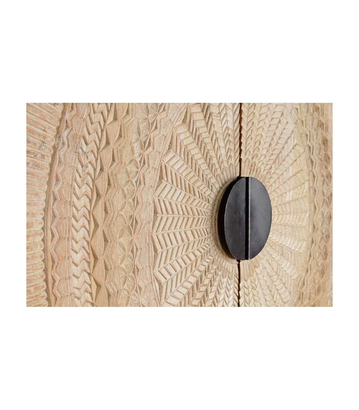 ARMARIO 124 X 42 X 176 ZARCO MADERA NATURAL TALLADA METAL NEGRO