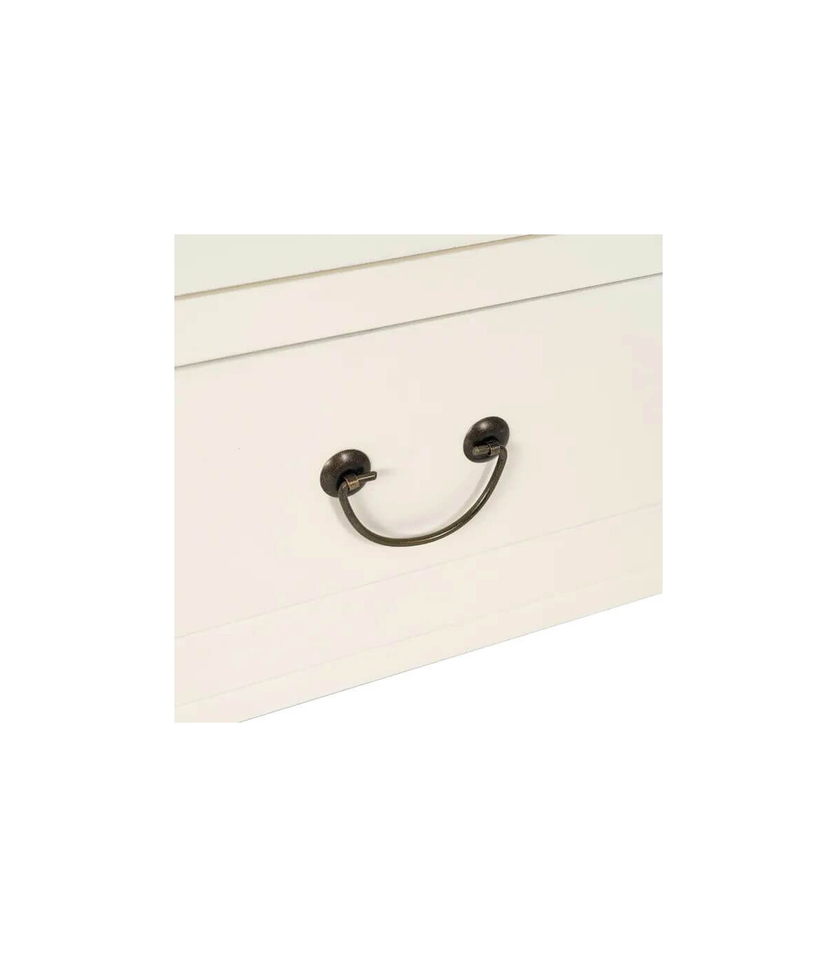 - Acabado, madera lacada en blanco roto, tiradores acabado bronce.