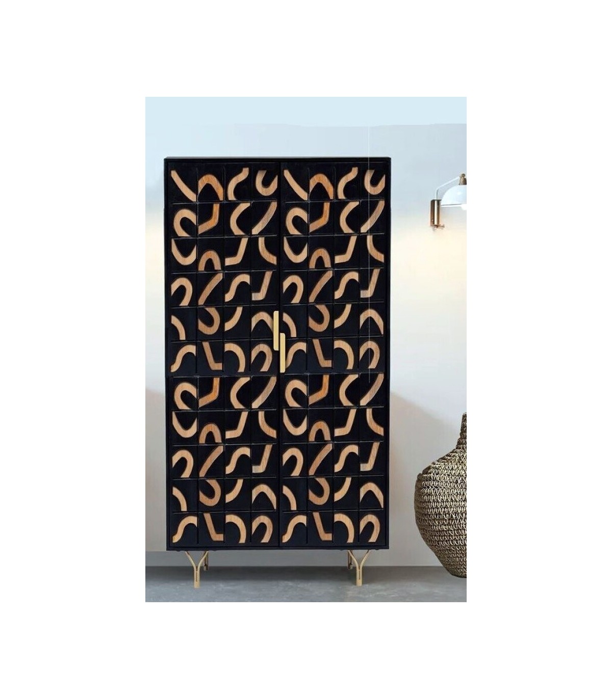 ARMARIO ALACENA 90 X 40 X 180 CIONES MADERA NEGRO Y NATURAL METAL ORO
