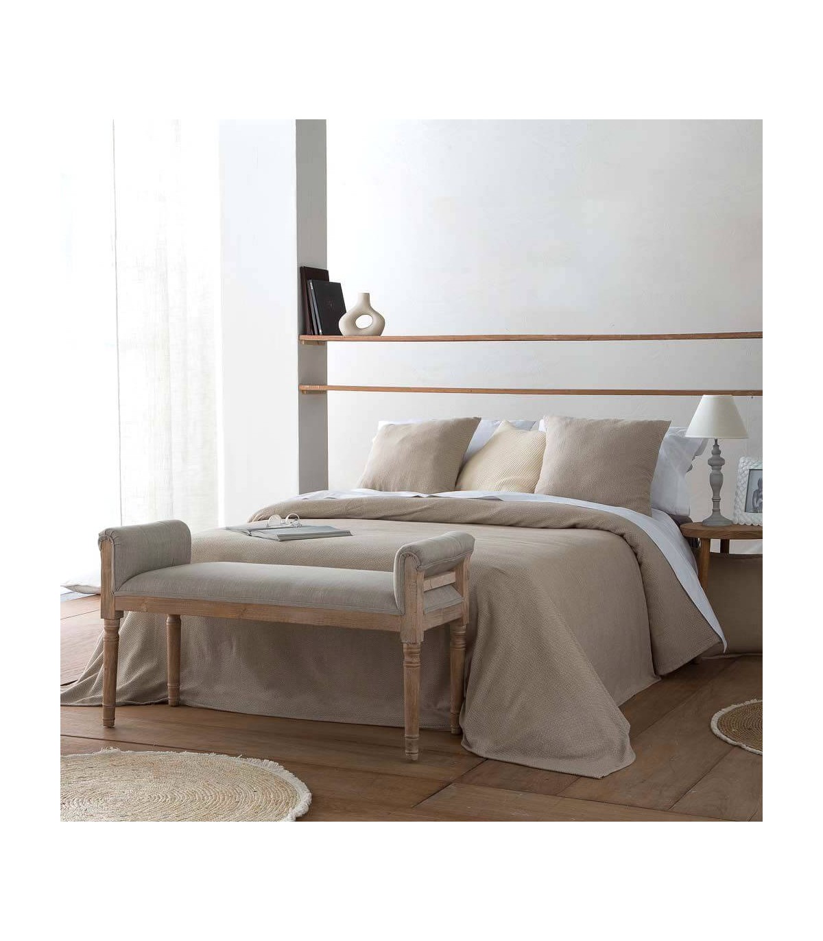 BANCO PIE DE CAMA 108 X 41 USIES MADERA NATURAL TELA TOPO