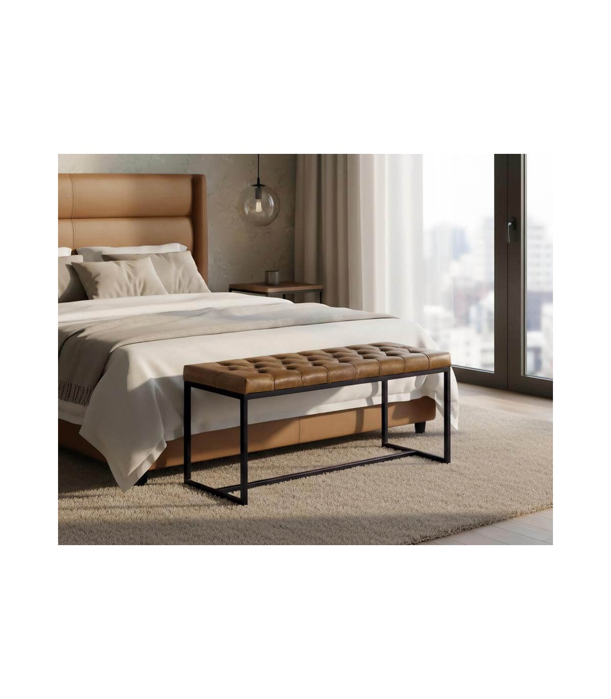 BANCO PIE DE CAMA 96 X 35 X 47 MARBEL PIEL MARRON METAL NEGRO