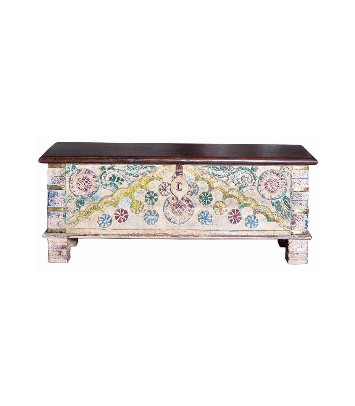BAUL 116 X 40 X 45 DALIAS MADERA DE MANGO POLICROMADO Y CAOBA