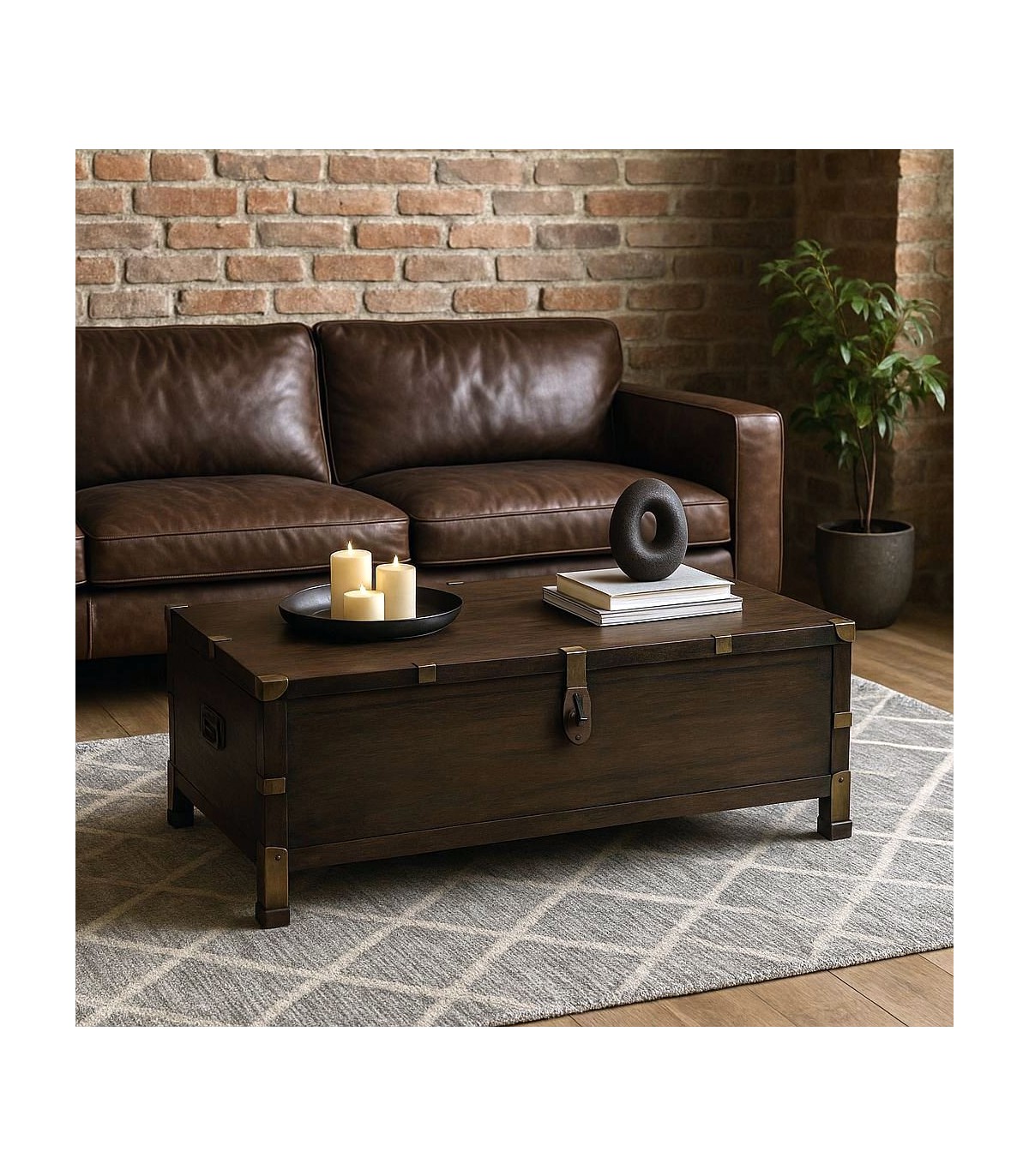 Este baúl de estilo industrial combina funcionalidad y carácter en una pieza robusta con alma vintage. Fabricado en madera maciza de mindi y reforzado con detalles en metal bronce, ofrece una presencia sobria y masculina ideal para interiores urbanos o rústicos. Su bandeja interior desmontable permite organizar objetos con facilidad, aportando orden sin renunciar al diseño. El acabado wengué oscuro potencia su estética contundente y sofisticada, perfecta para salones, dormitorios o entradas con personalidad. Un mueble con historia para guardar secretos, recuerdos o simplemente, estilo.