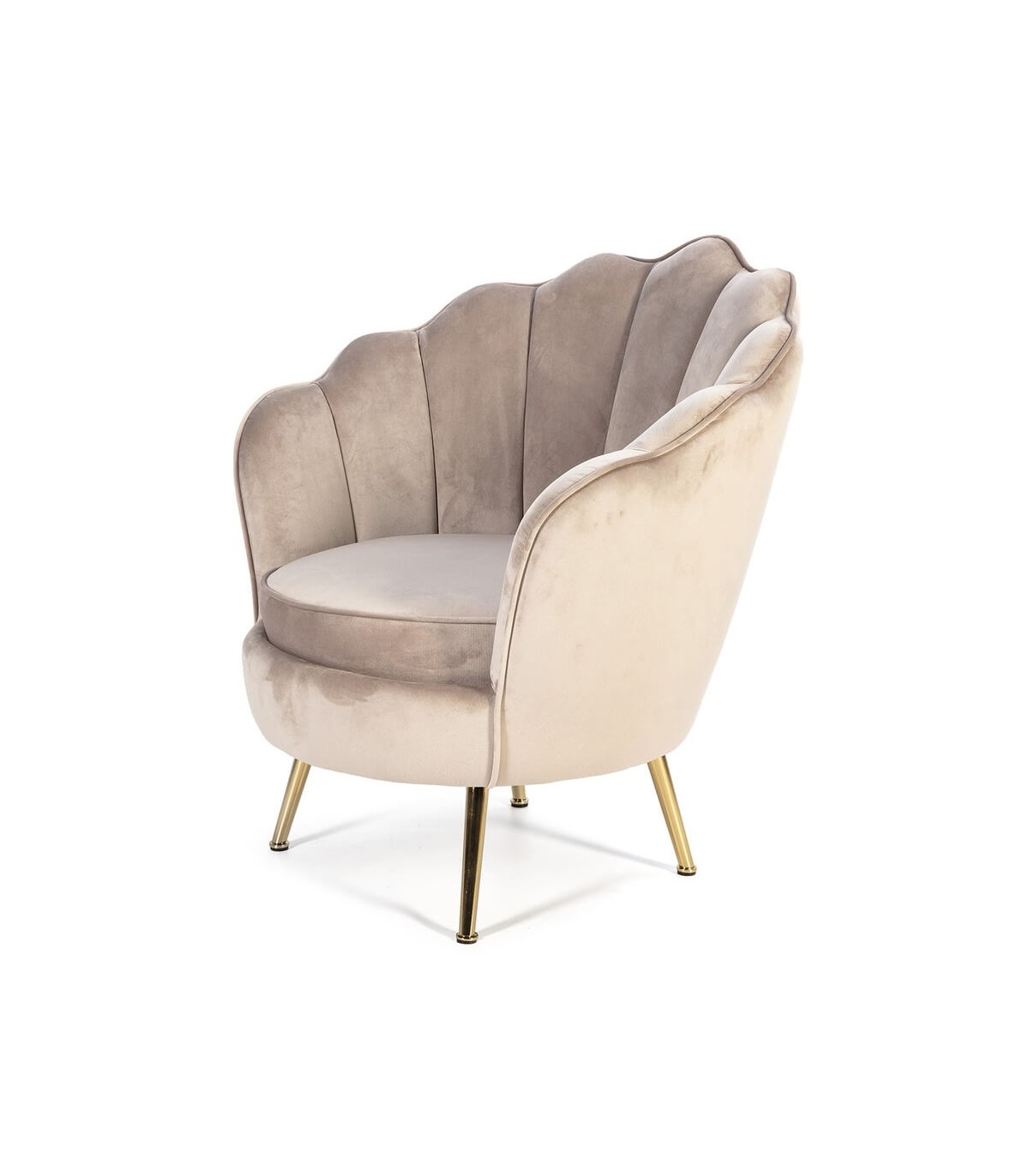 BUTACA 80 X 75 X 84 CONCHA TELA BEIGE METAL DORADO