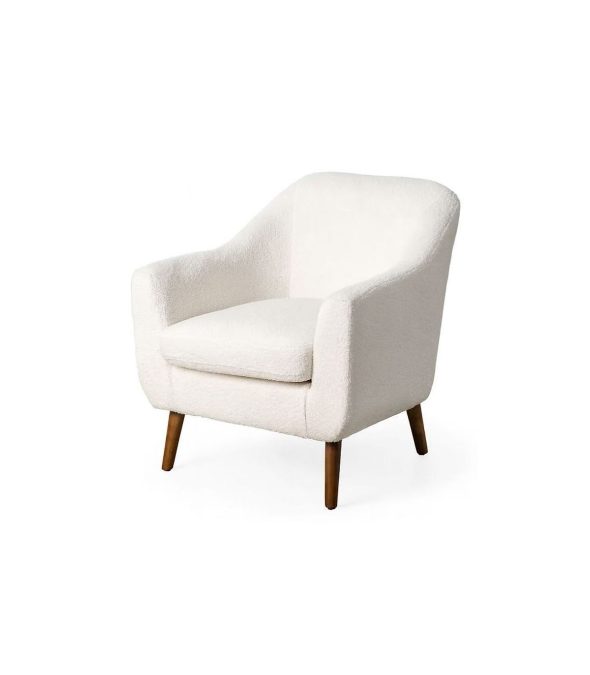 🎨 Acabado: Tela bouclé color blanco, patas madera color nogal