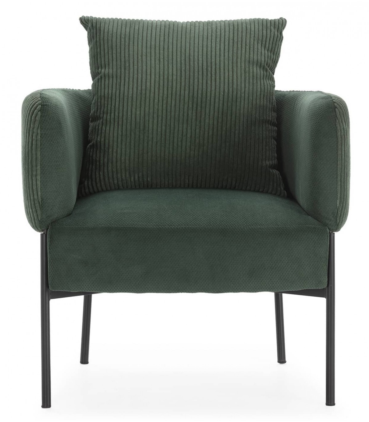 Añade un toque de confort y diseño moderno con esta butaca pequeña de estructura de madera, con asiento y respaldo acolchados en espuma de alta densidad. Su tapizado en pana gruesa y chenilla en color verde le aporta un estilo sofisticado y acogedor.