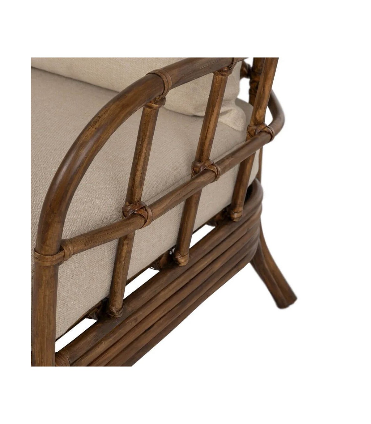 🛠️ Materiales: Estructura de ratán, asiento y respaldo rellenos de foam, textil poliéster.
