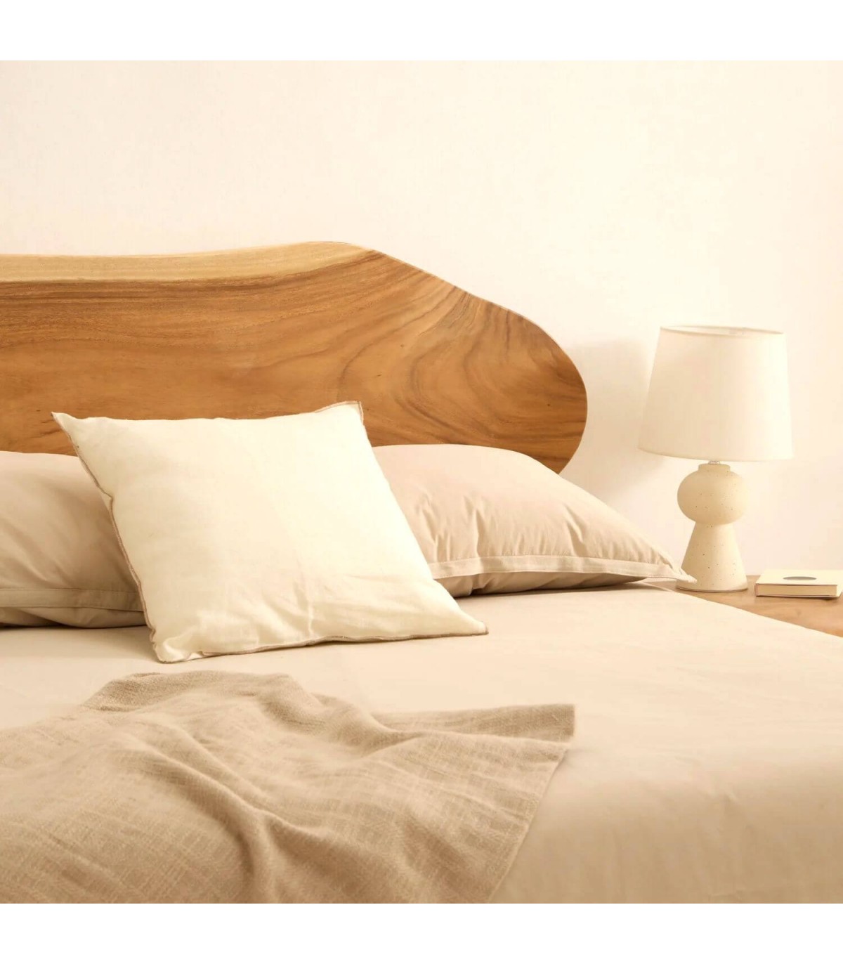 Su diseño minimalista con líneas orgánicas combina calidez y sofisticación en perfecta sintonía. Ideal para ambientes boho o japandi donde prima la calma visual y el contacto con materiales nobles. Una pieza que transforma el descanso en un ritual de belleza natural.