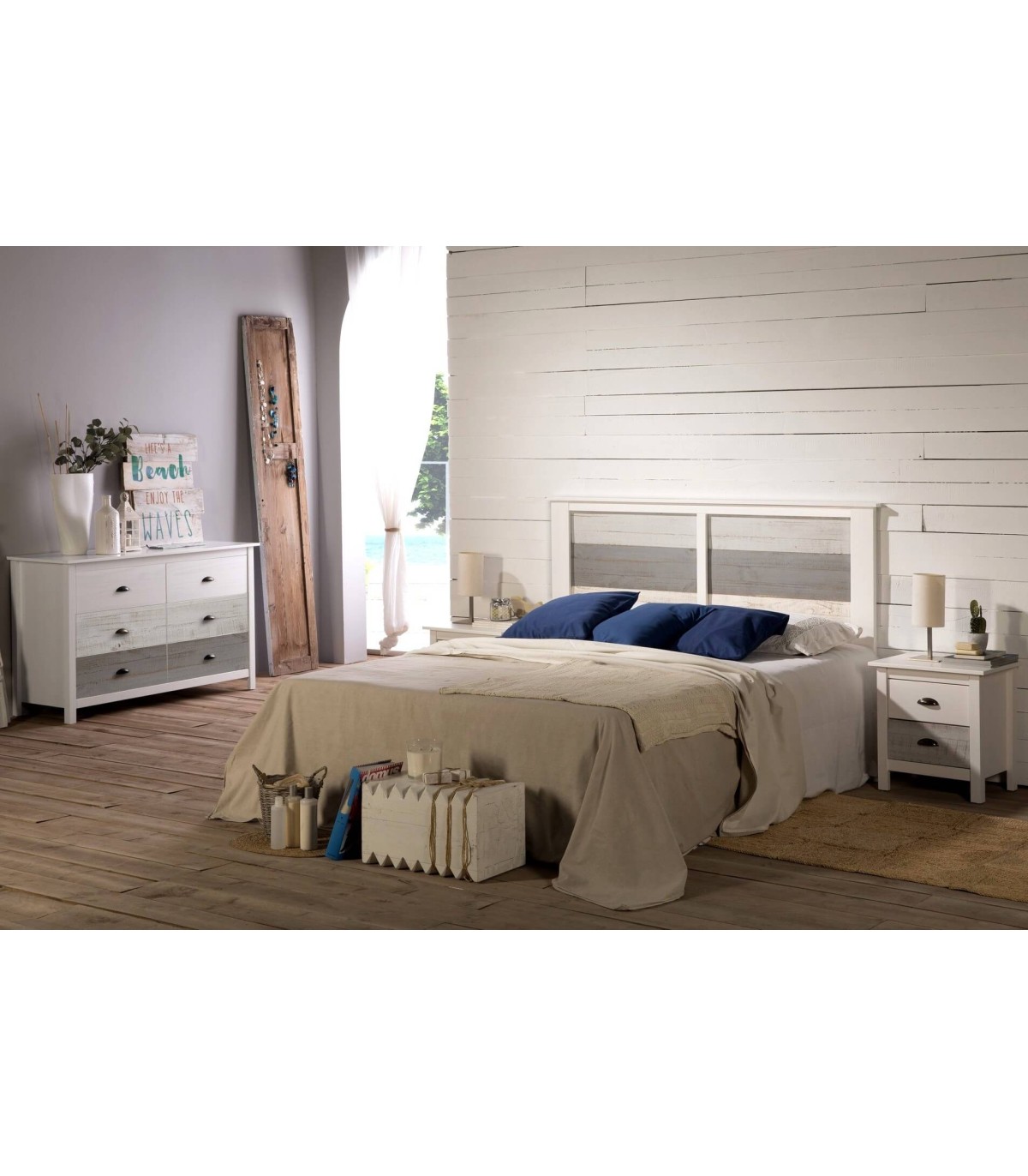 Bonito cabecero para cama de matrimonio, destaca el acabado artesanal sobre el pino macizo, esos 4 colores pintados a poro abierto que le dan mucho carácter.