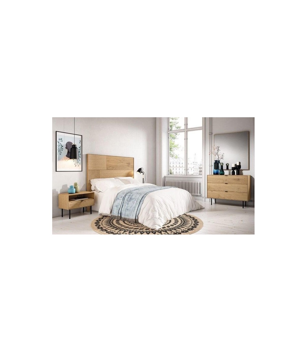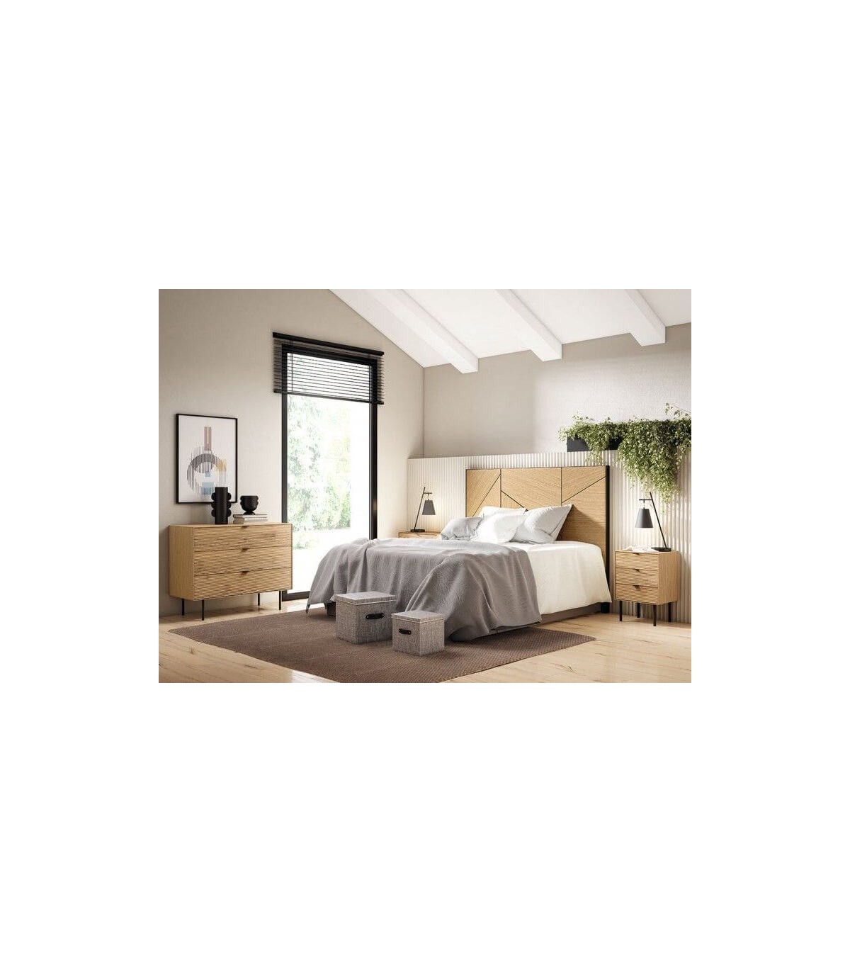 Acabado, madera natural, metal negro.
