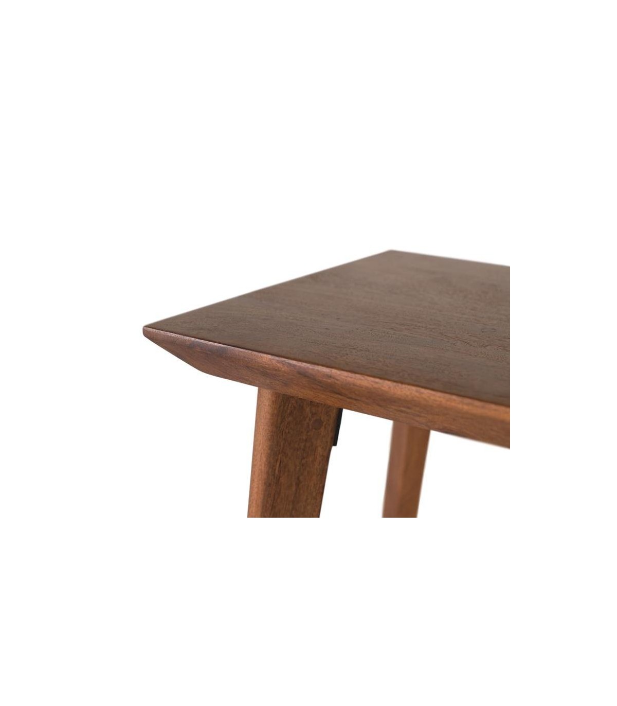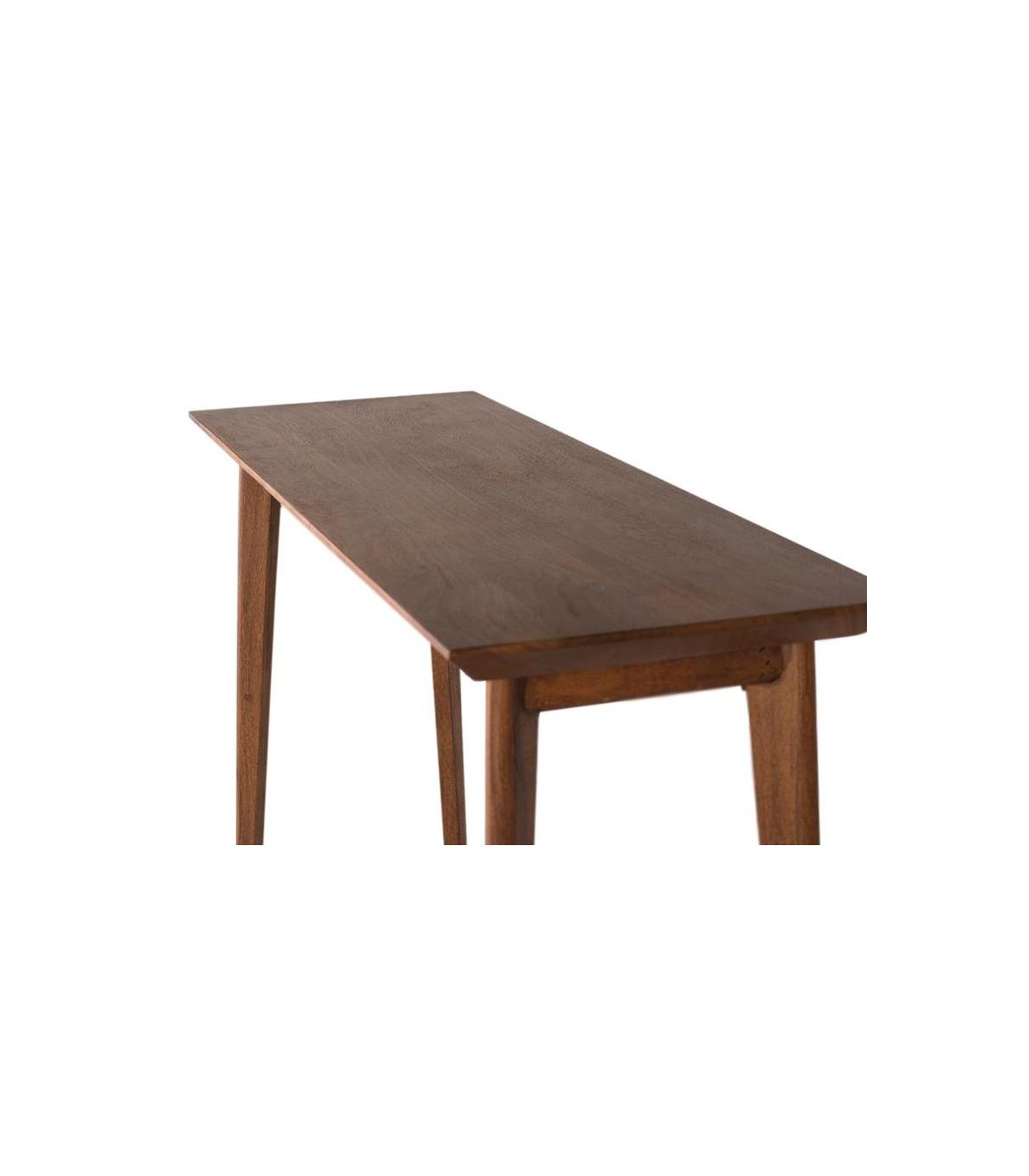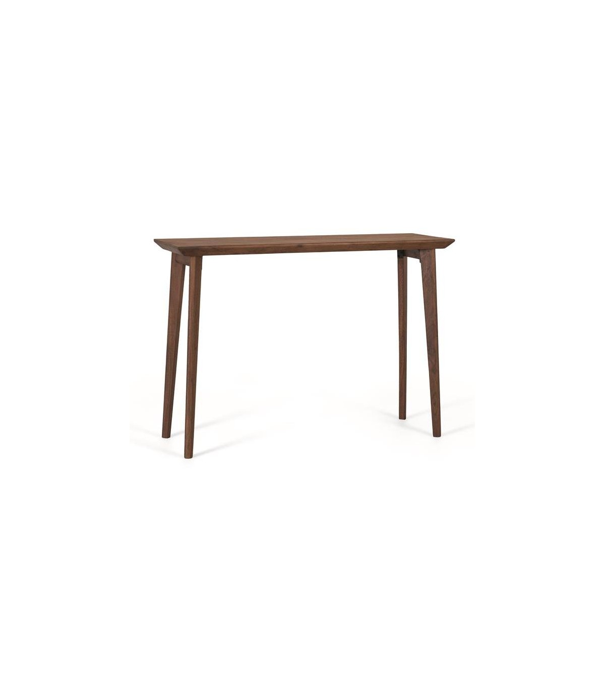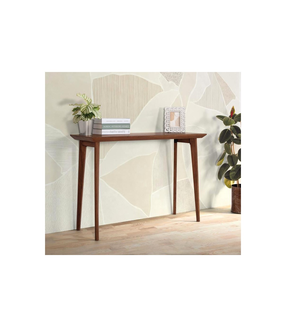 Consola de entrada realizada en madera de mango teñida en color nogal. Consola que emana un encanto natural y una elegancia sutil en cada detalle. Está meticulosamente elaborada en madera de mango, infunde un carácter distintivo a cualquier espacio.