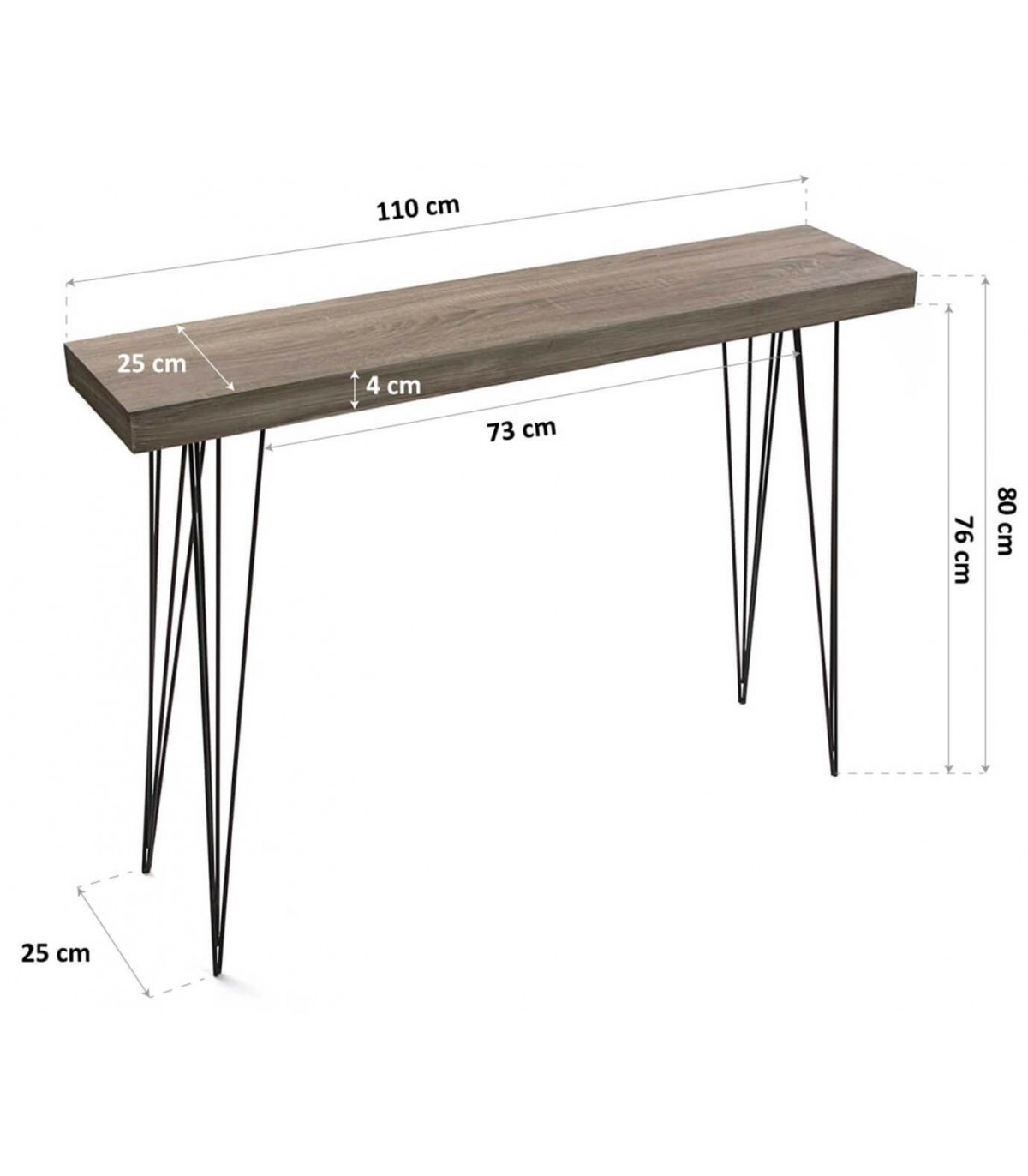 CONSOLA DE ENTRADA 110 X 25 X 80 LLADAS MDF ROBLE METAL NEGRO