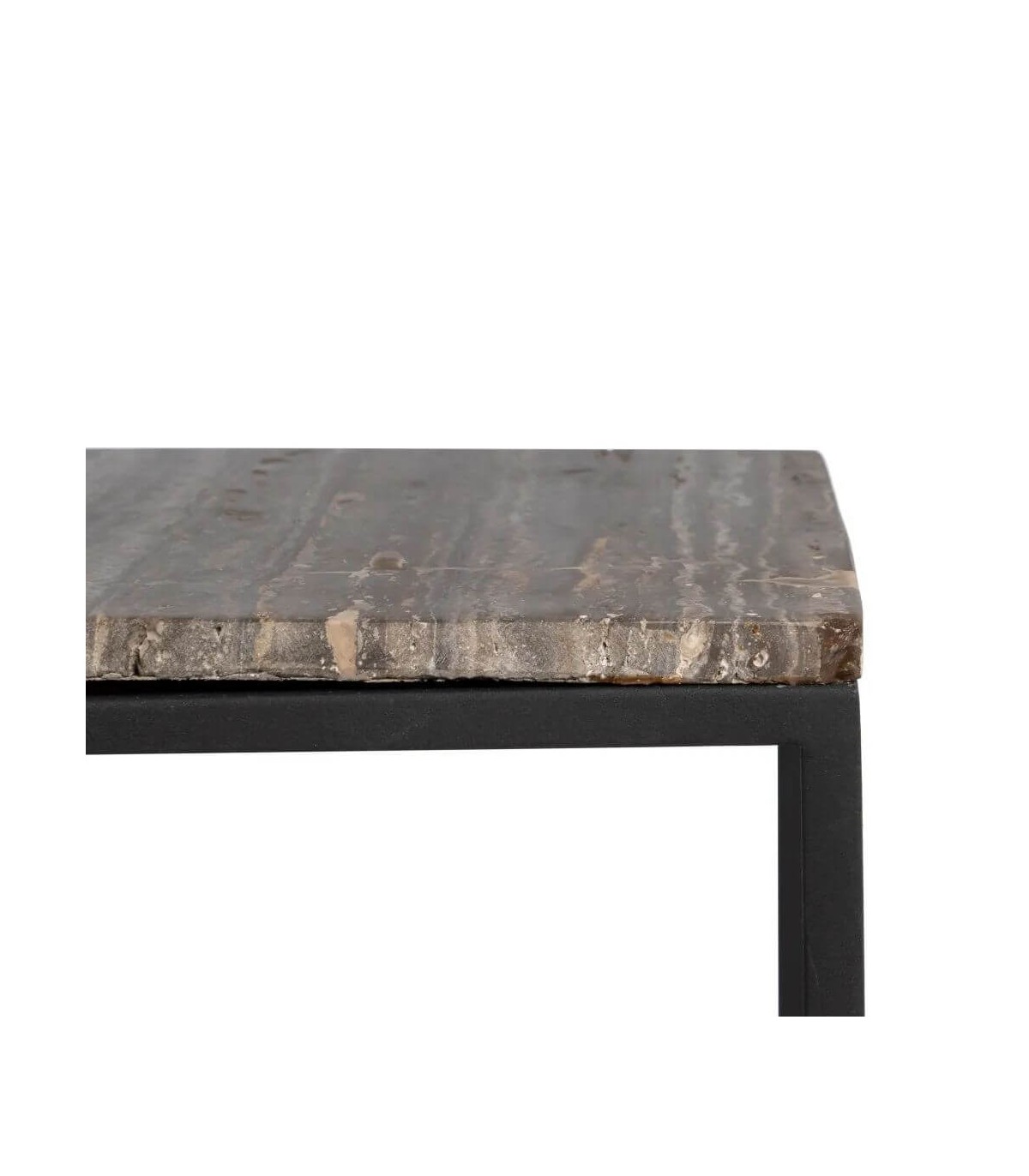 • Acabado, metal negro, tapa de mármol color topo.