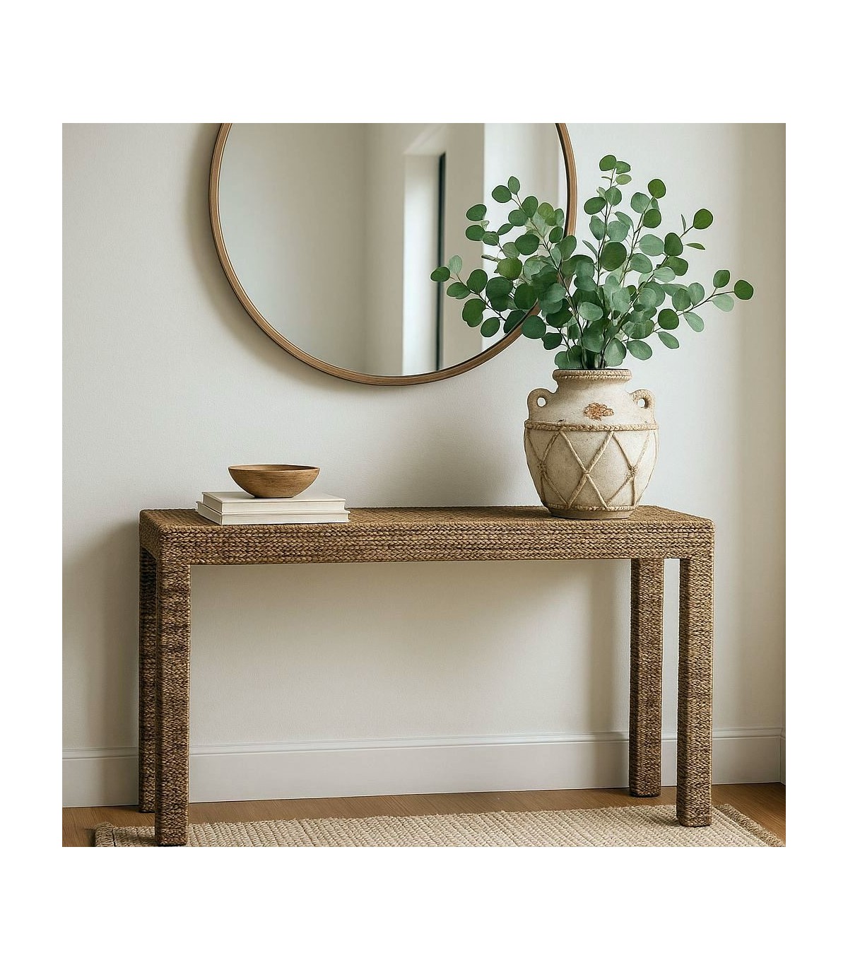 🌾 Consola de Entrada de Madera y Fibra Natural Trenzada – Estilo Boho Artesanal ✨