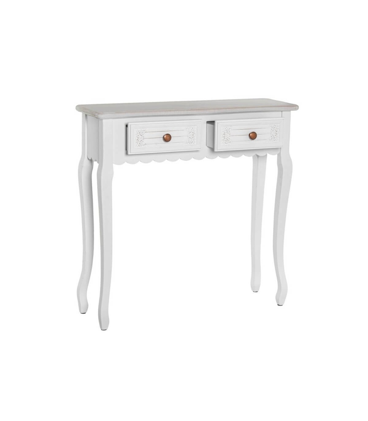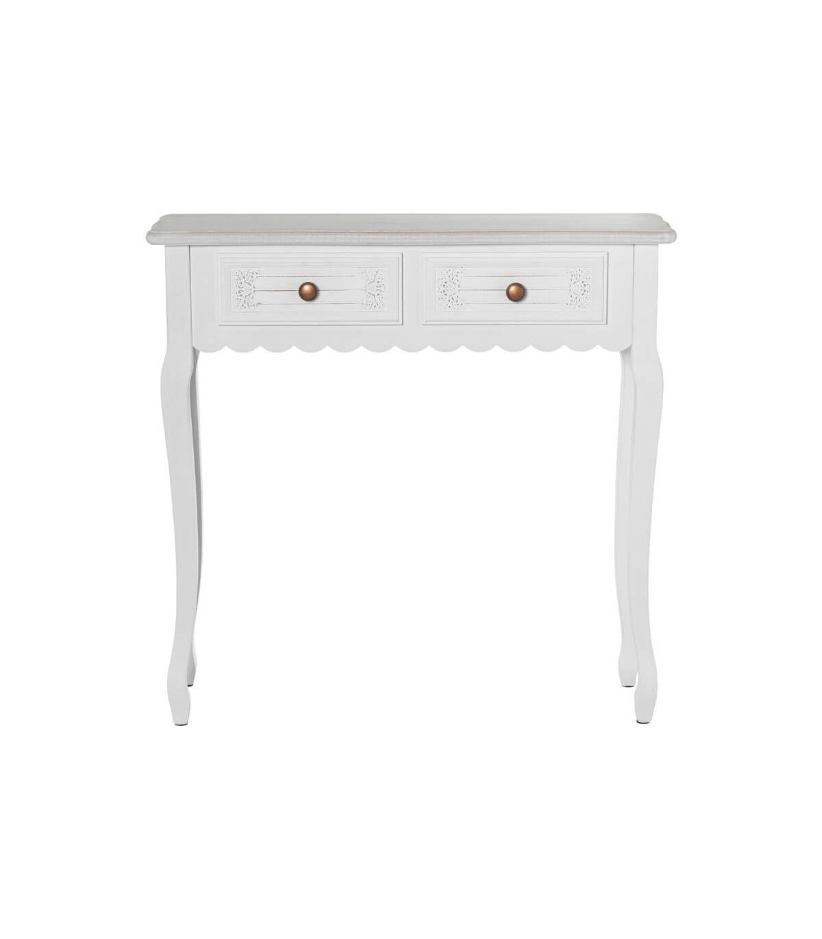 CONSOLA DE ENTRADA PEQUEÑA 80 X 25 X 78 CLESMA MADERA TALLADA BLANCA