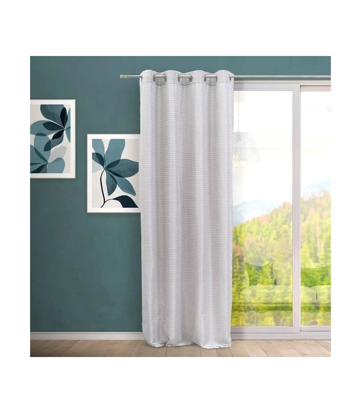 Cortina opaca para colgar con barra, realizada en Jacquard en tonos grises, una cortina elegante y actual que aporta luminosidad y calidez.