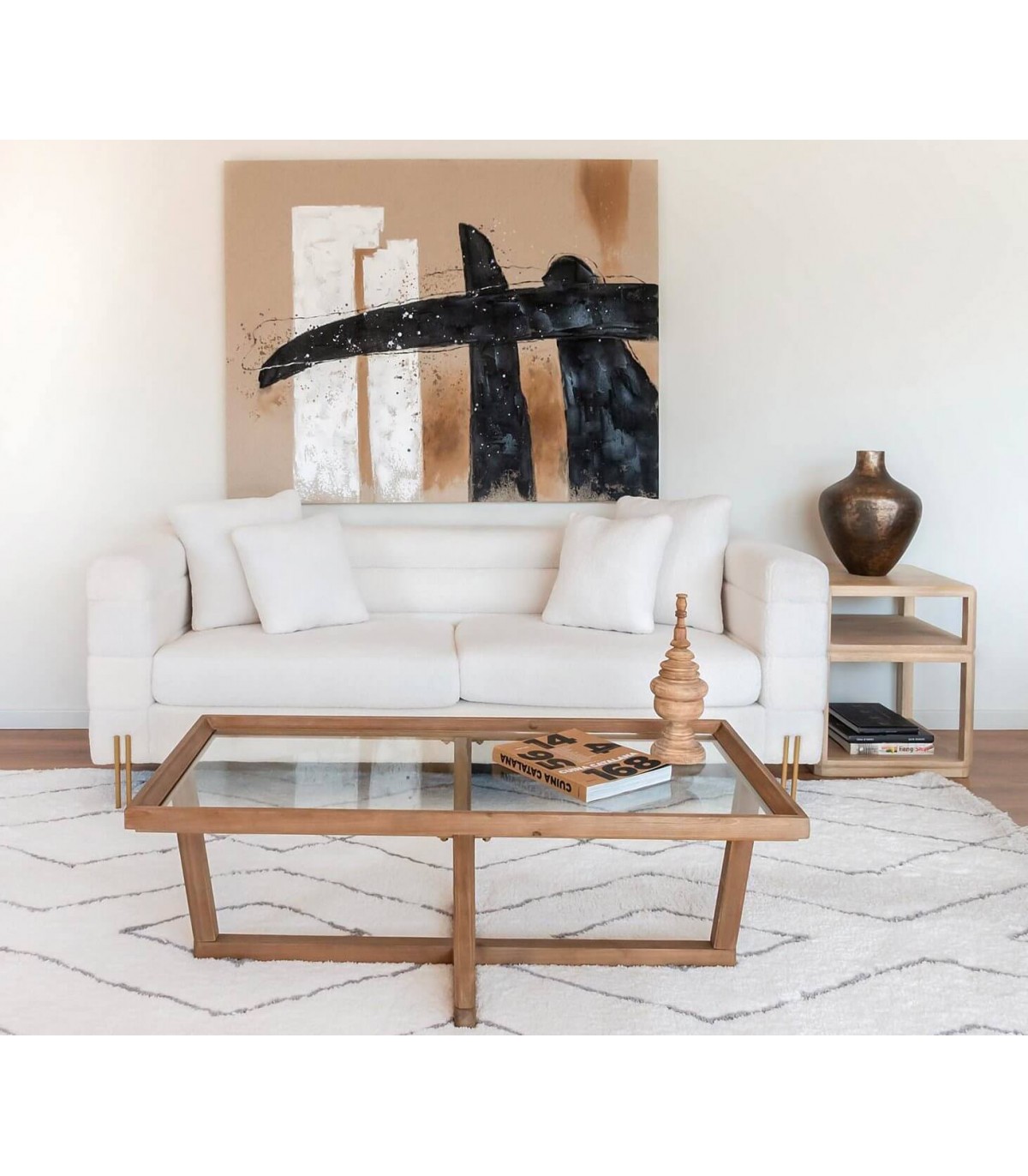 Cuadro pintado a mano sobre lienzo en bastidor de madera, en tonos marrones, negros y blancos, cuadro rectangular de grandes dimensiones.
