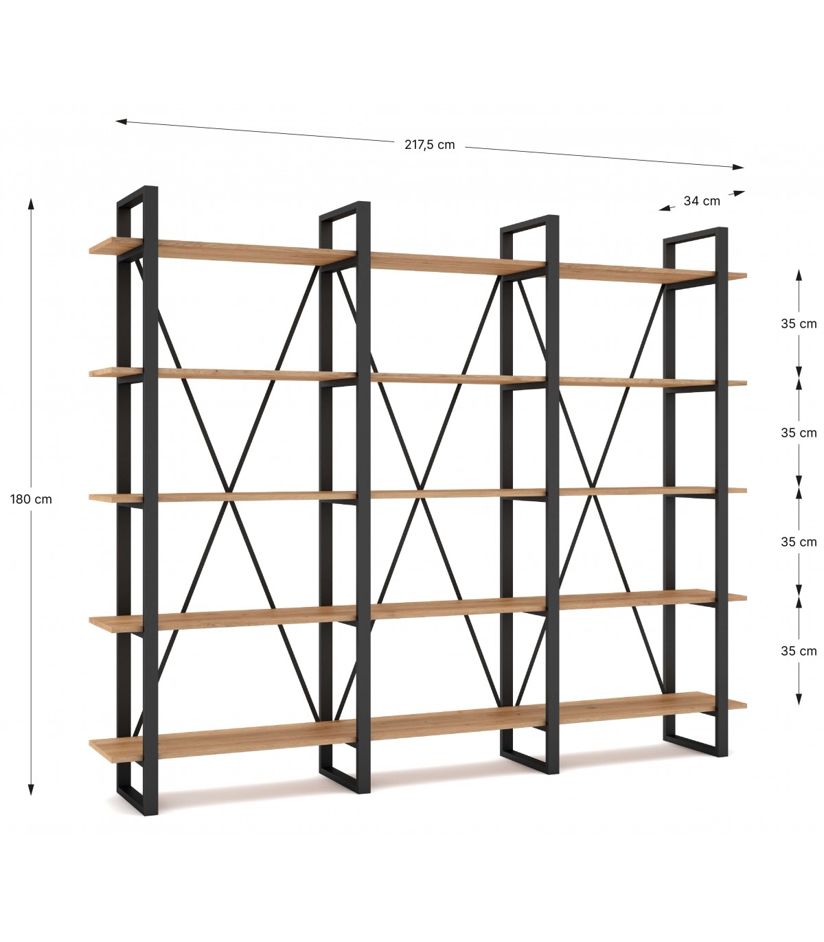 ESTANTERIA 218 X 35 X 180 VILVA METAL NEGRO MADERA IMITACION ROBLE