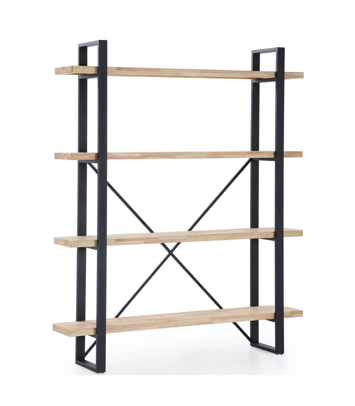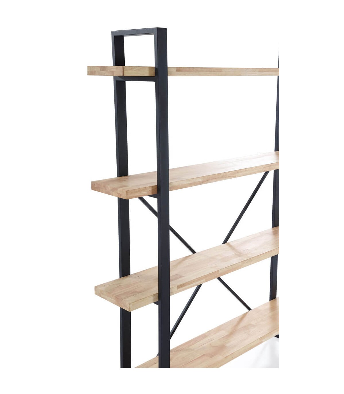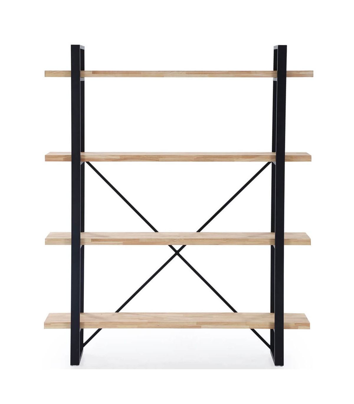 Una pieza robusta y elegante que combina la calidez de la madera natural de roble con la fuerza del hierro negro. Esta estantería estilo industrial ofrece cinco amplios estantes para organizar libros, objetos decorativos o piezas funcionales en cualquier estancia. Su diseño estructural con refuerzo cruzado posterior no solo aporta estabilidad, sino también carácter visual. Ideal para quienes buscan un mueble versátil y con personalidad.