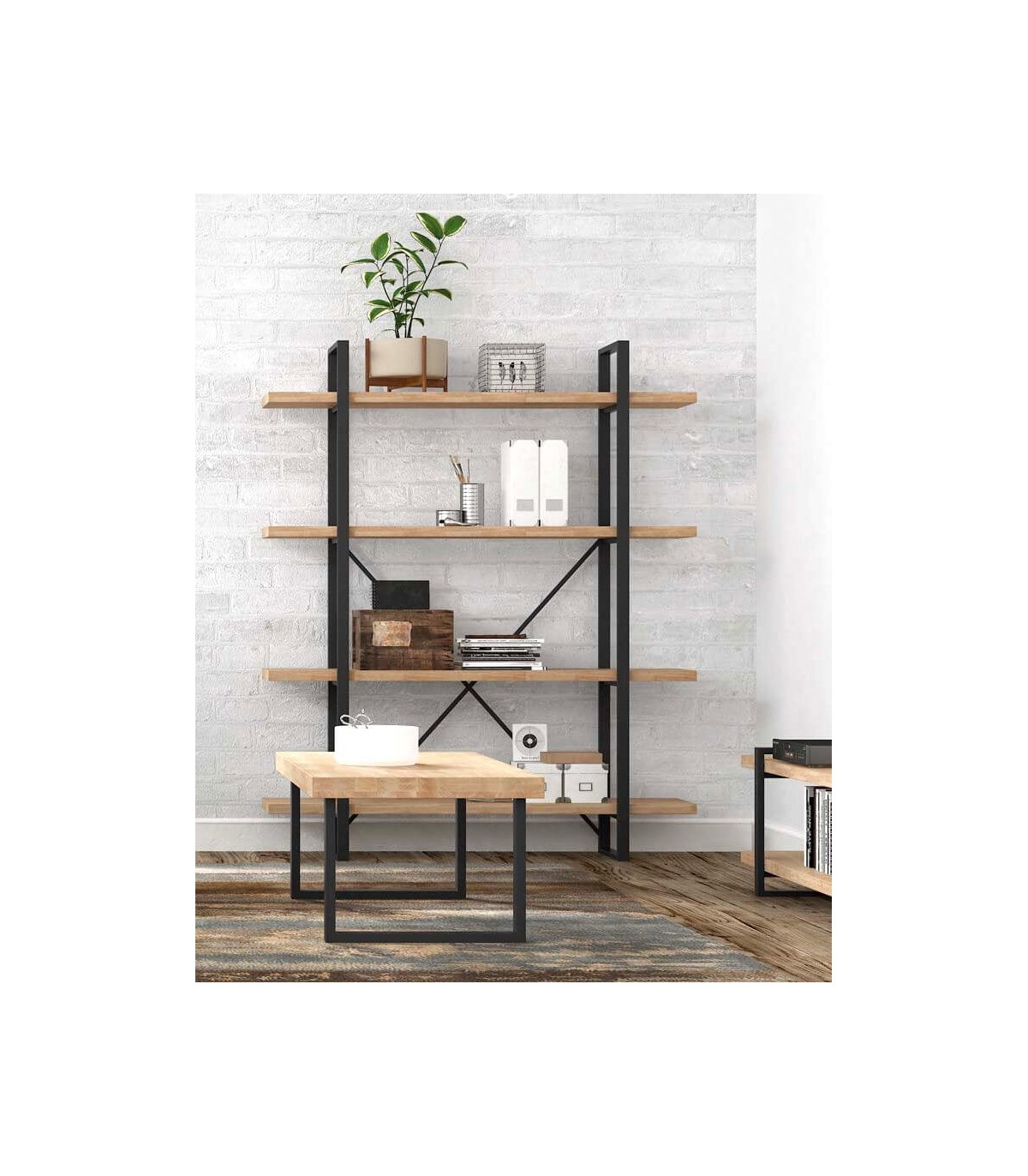 Librería, estantería, estilo industrial.