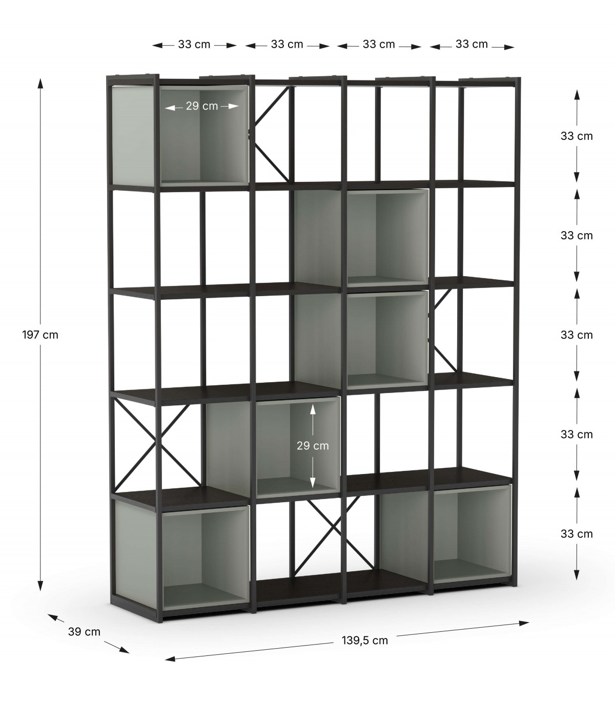 El diseño abierto y estructurado aporta ligereza visual sin perder robustez ni capacidad. Ideal para salones modernos, despachos o zonas de lectura con estética urbana. Una pieza decorativa práctica, versátil y con carácter geométrico actual.
