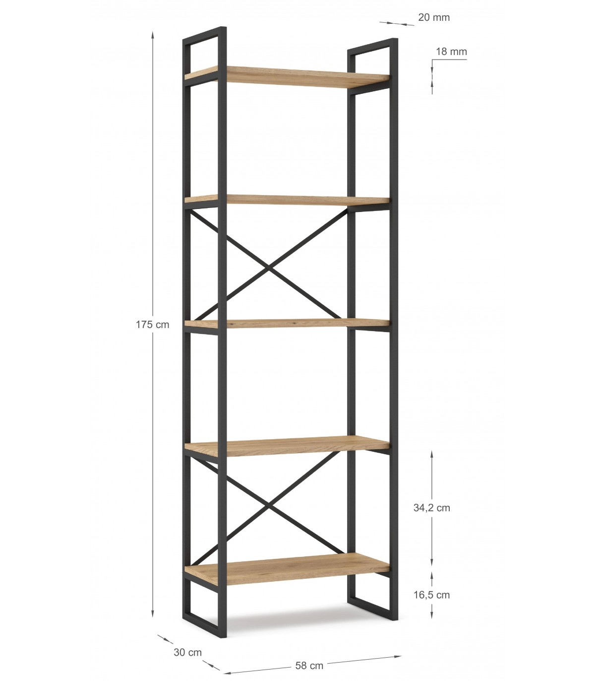 ESTANTERIA 50 X 38 X 175 RENTEL METAL NEGRO MADERA IMITACION ROBLE