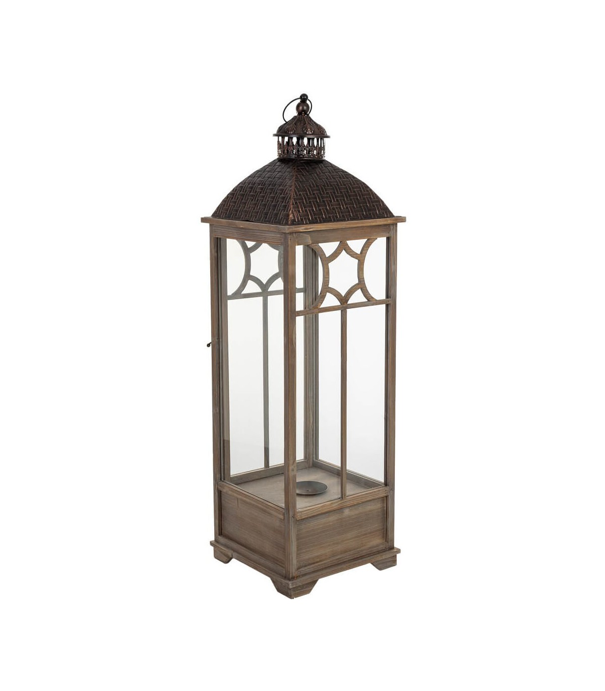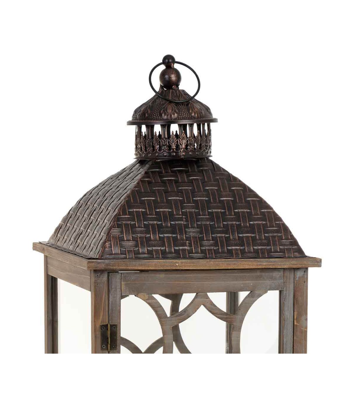FAROL ALTO 32 X 32 X 104 JALON MADERA NATURAL METAL REPUJADO BRONCE