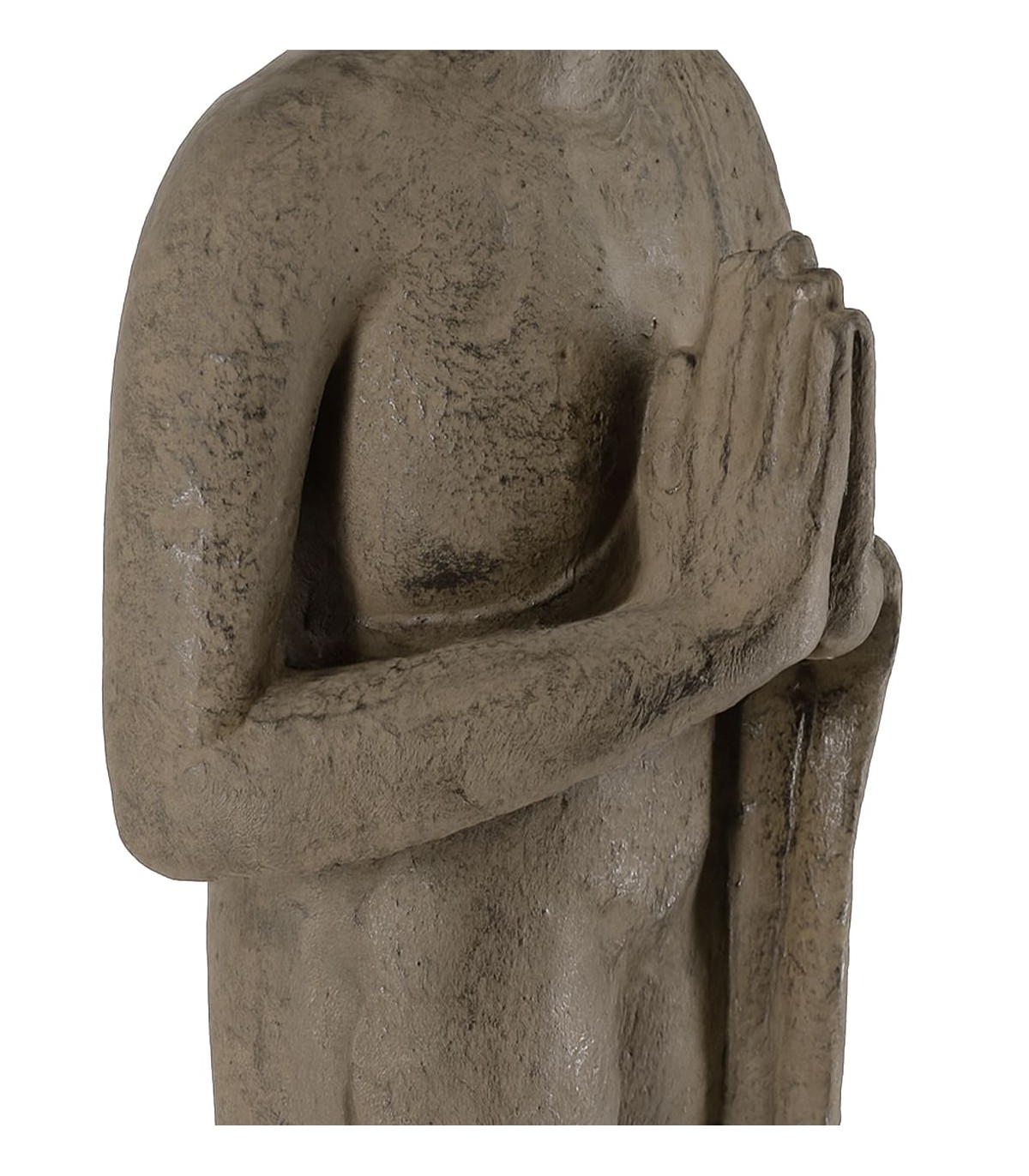 La postura en saludo añade una sensación de calma que armoniza con ambientes naturales, rincones zen o entradas donde se busca un toque simbólico y artesanal, mientras su silueta esbelta actúa como pieza focal discreta junto a plantas, velas o muebles de fibras naturales.