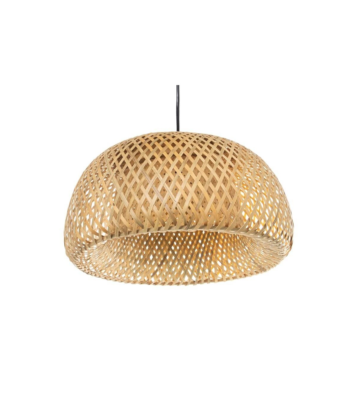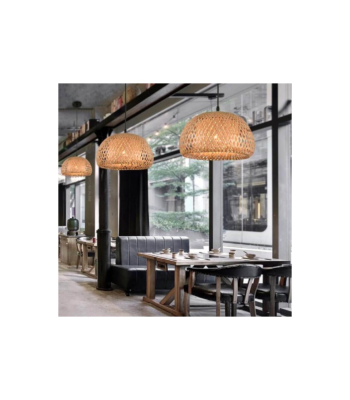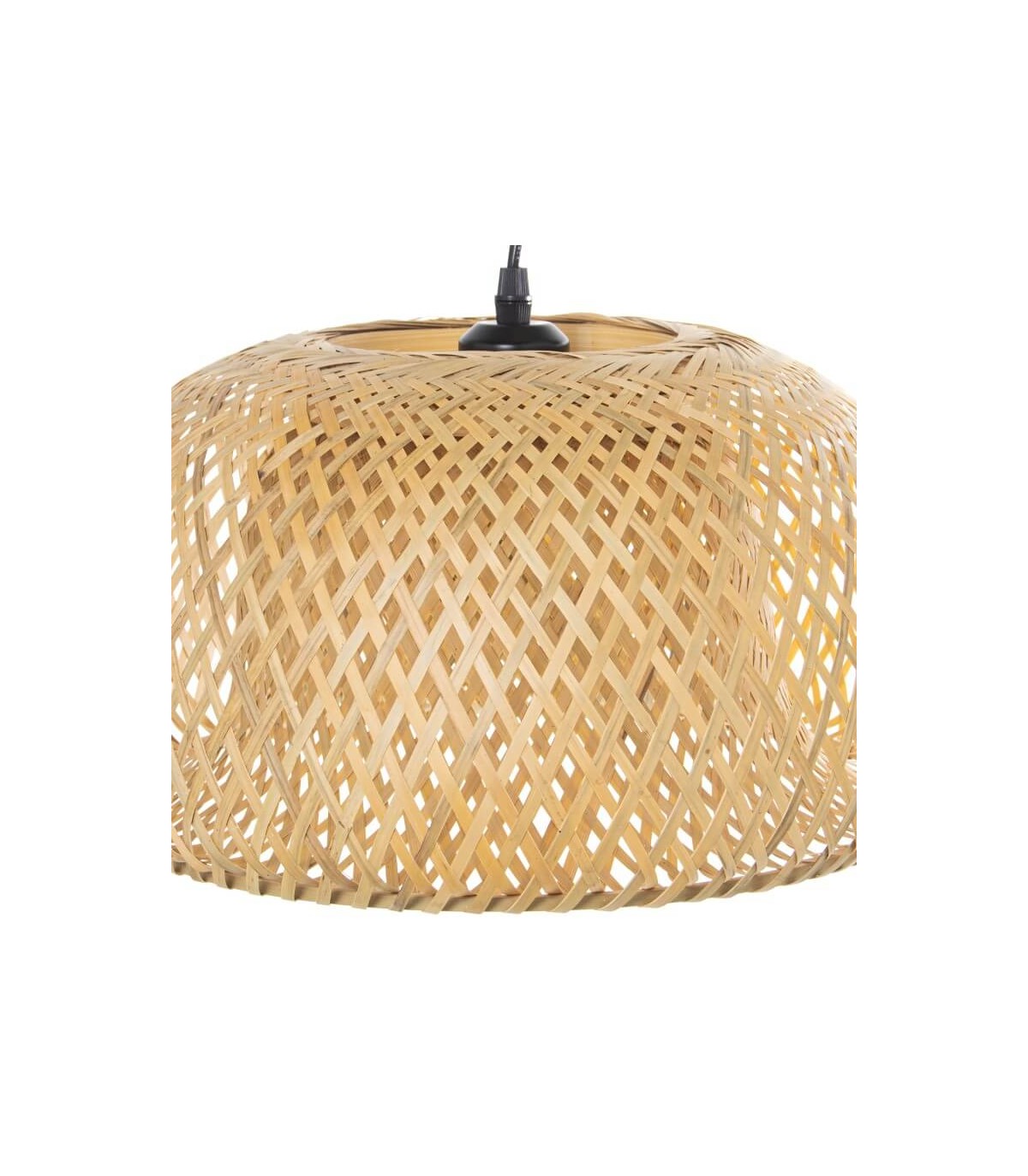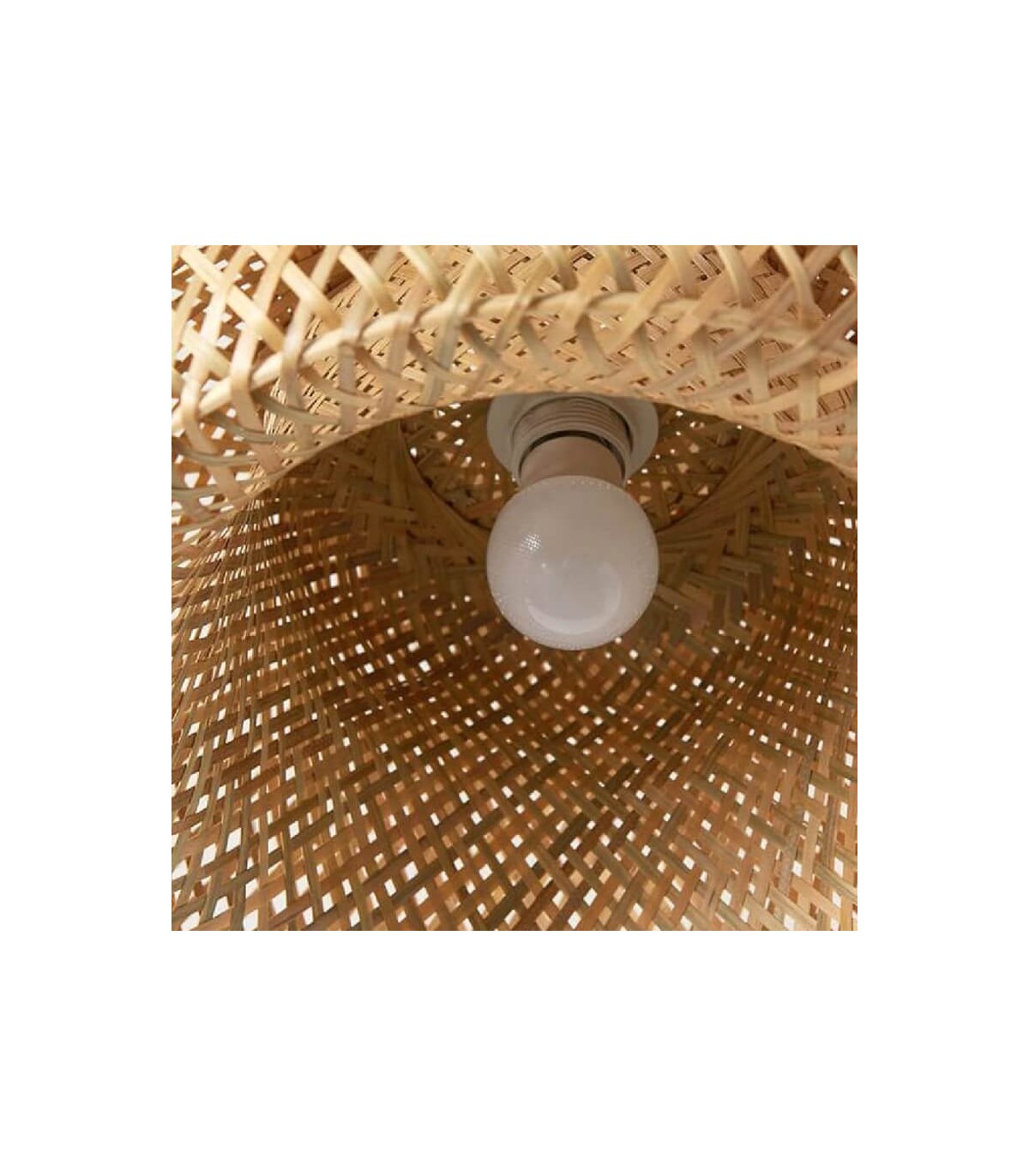 Lámpara de techo, se compone de un armazón de ratán, caracterizado por sus formas sencillas, de color natural y duradero. Ideal para estancias decoradas en en el nuevo estilo vintage rústico, la disposición de sus varillas deja traspasar la luz creando un ambiente cálido y acogedor, también característicos de las zonas mediterráneas avocadas al descanso y la meditación, utilizándose también este estilo para relajar zonas de trabajo y hogares.