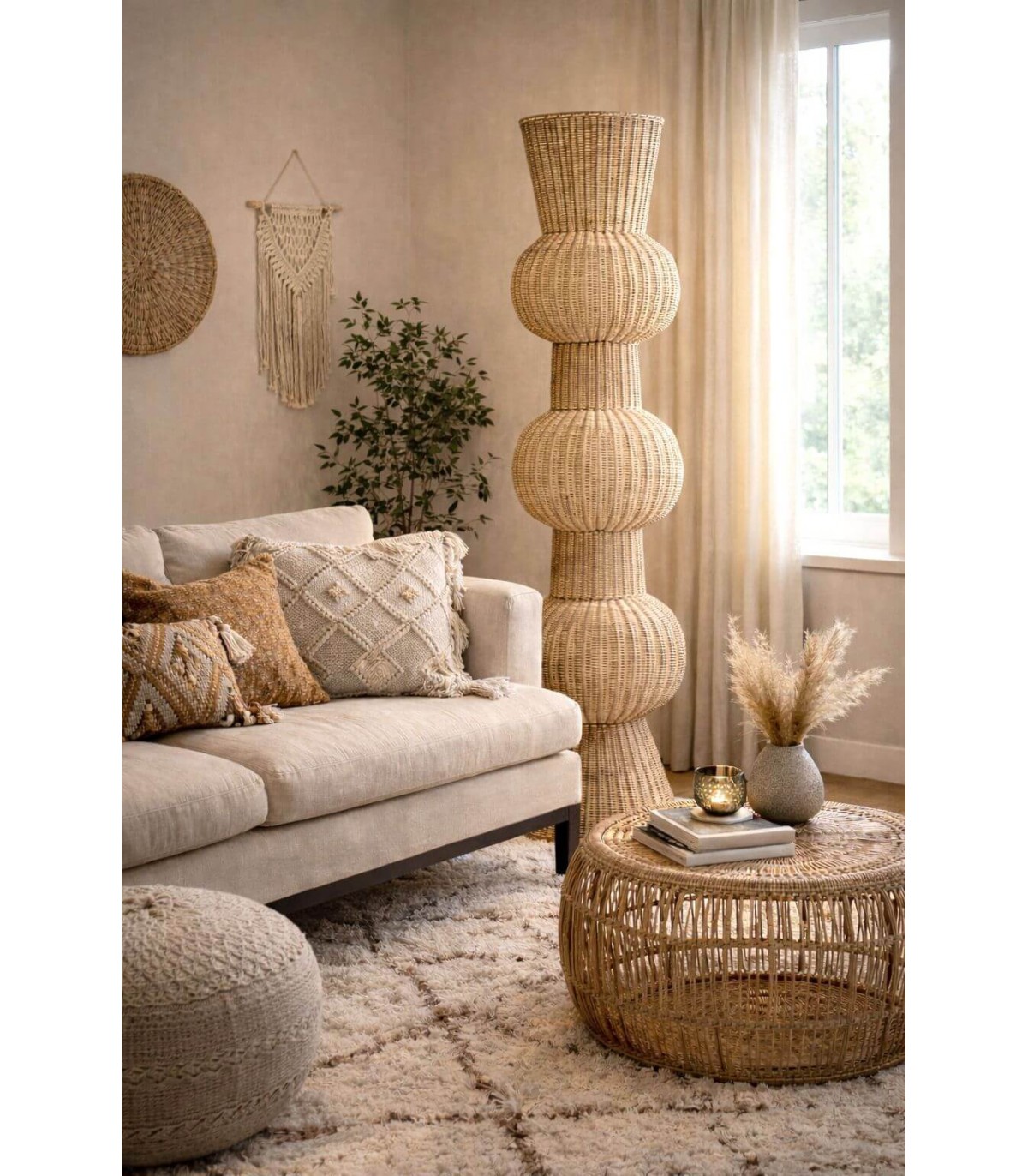 🪔 Lámpara de Pie de Ratán Natural – Estilo Boho 🌿