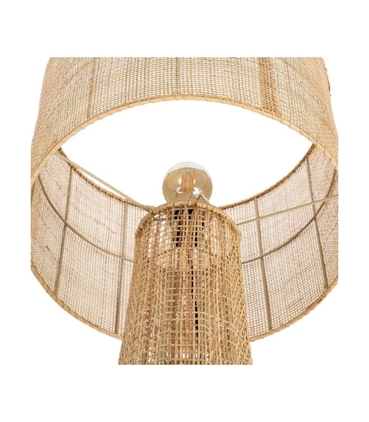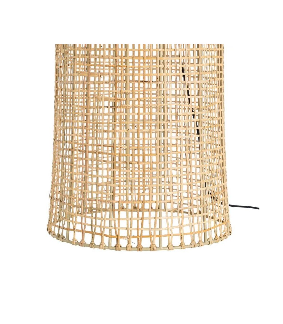 Esta lámpara de pie de inspiración boho irradia calidez y carácter artesanal en cualquier rincón del hogar. Su estructura de ratán natural trenzado a mano crea un juego de luces envolvente y natural que aporta atmósfera relajada. La textura vegetal del material contrasta con la sencillez de su diseño, logrando un equilibrio orgánico y elegante. Ideal para salones, dormitorios o rincones de lectura, aporta autenticidad y serenidad visual. Cada pieza es única por su trenzado manual, lo que añade alma y un toque exótico al ambiente. Una lámpara que transmite naturaleza, estilo y armonía contemporánea.