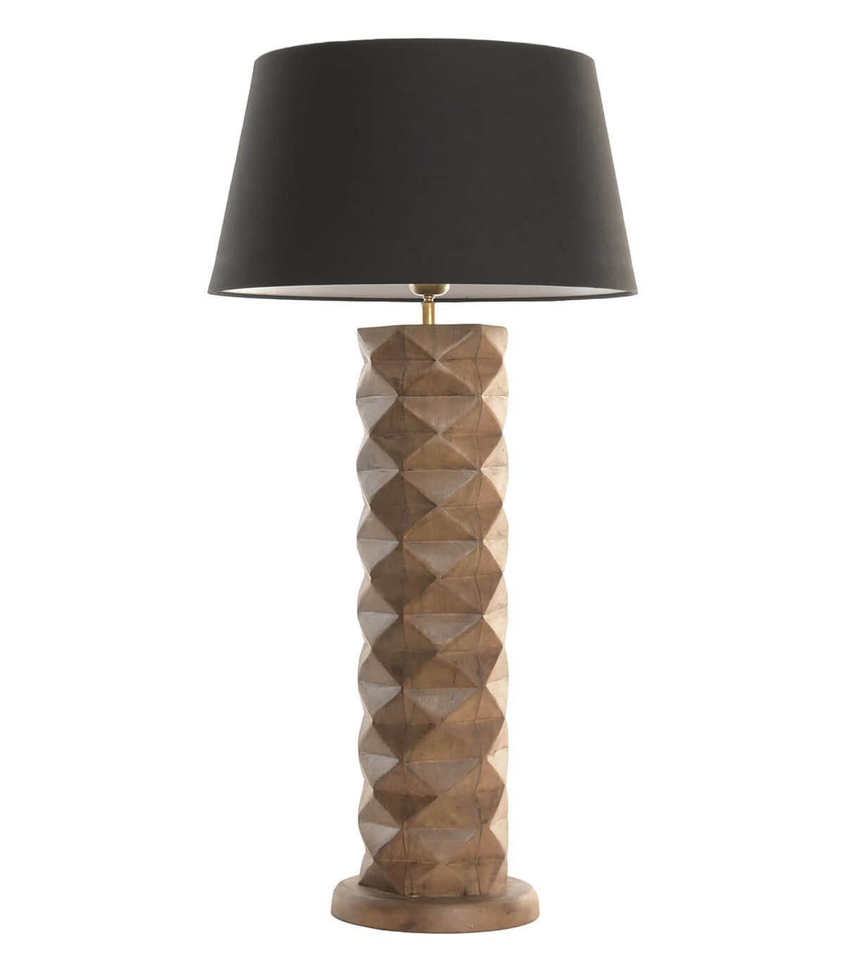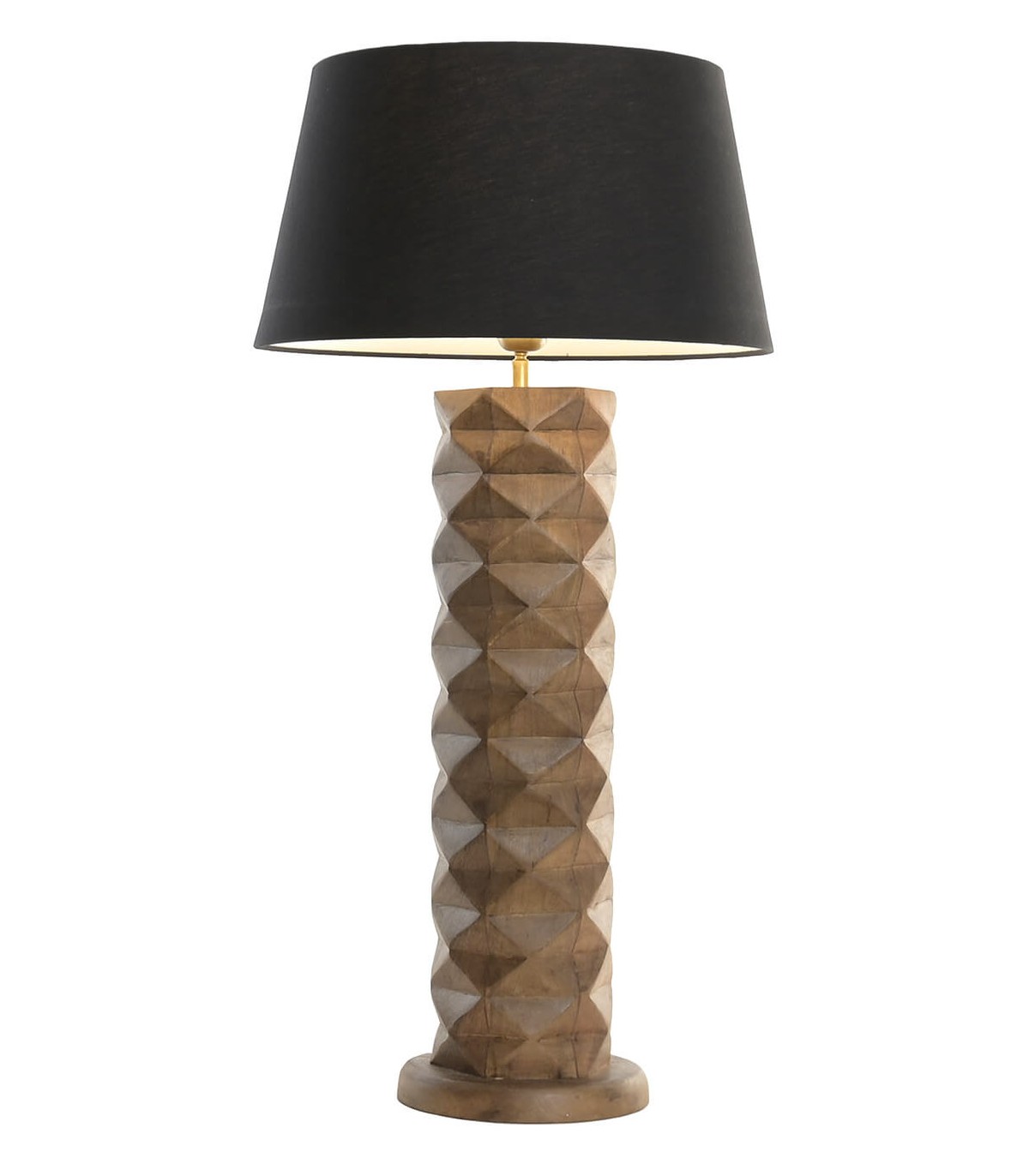 LAMPARA DE SOBREMESA 42 Ø X 58 ROUTE MADERA TALLADA TEXTIL NEGRO